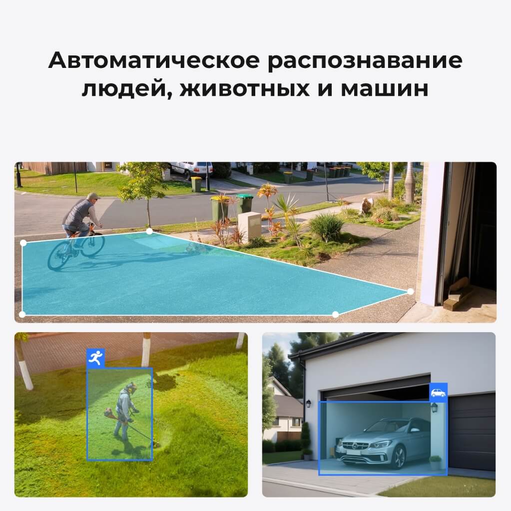 Камера имеет функцию настройки зоны движения, позволяющую пользователю определять, где нужно фиксировать активность, игнорируя другие зоны. При обнаружении движения в этой зоне, устройство мгновенно отправит сообщение на смартфон и начнет автоматическую запись события за 4 секунды до его начала. Для минимизации ложных срабатываний, устройство может распознавать людей, животных и машины.