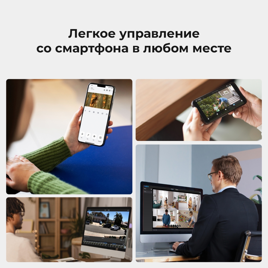 Поддержка удаленного управления камерой, позволит вам видеть обстановку в доме, офисе или другом объекте через фирменное приложение Reolink – просто установите его на свой смартфон, планшет или ПК. В нем также можно выполнить настройку системы видеонаблюдения.