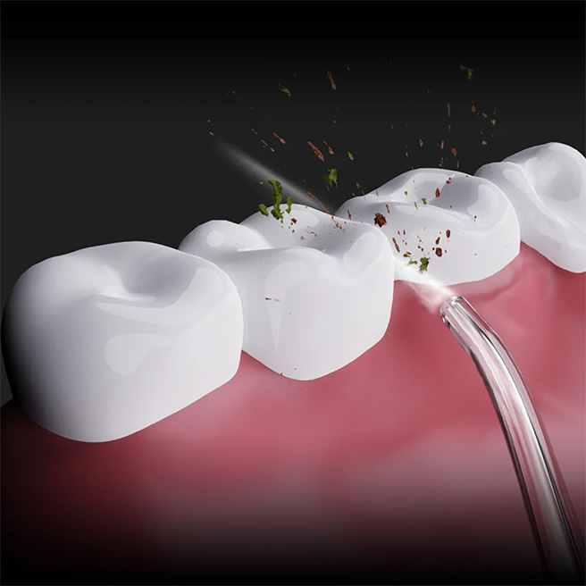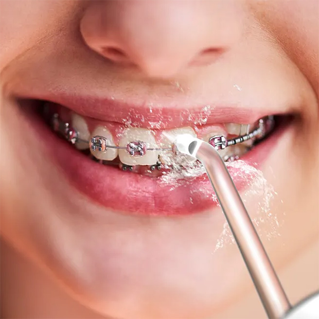 AENO DI1 демонстрирует превосходные результаты при очистке брекетов. Вода эффективно проходит через проволоку и брекеты, удаляя остатки пищи и предотвращая образование зубного налета в этих труднодоступных местах, обеспечивая идеальную гигиену полости рта