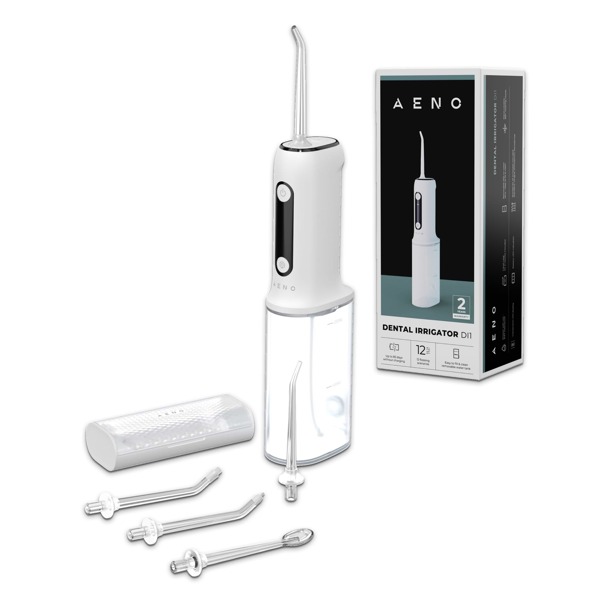 Благодаря впечатляющему времени автономной работы - до 85 дней без подзарядки AENO DI1 станет надежным помощником по уходу за полостью рта даже в путешествиях