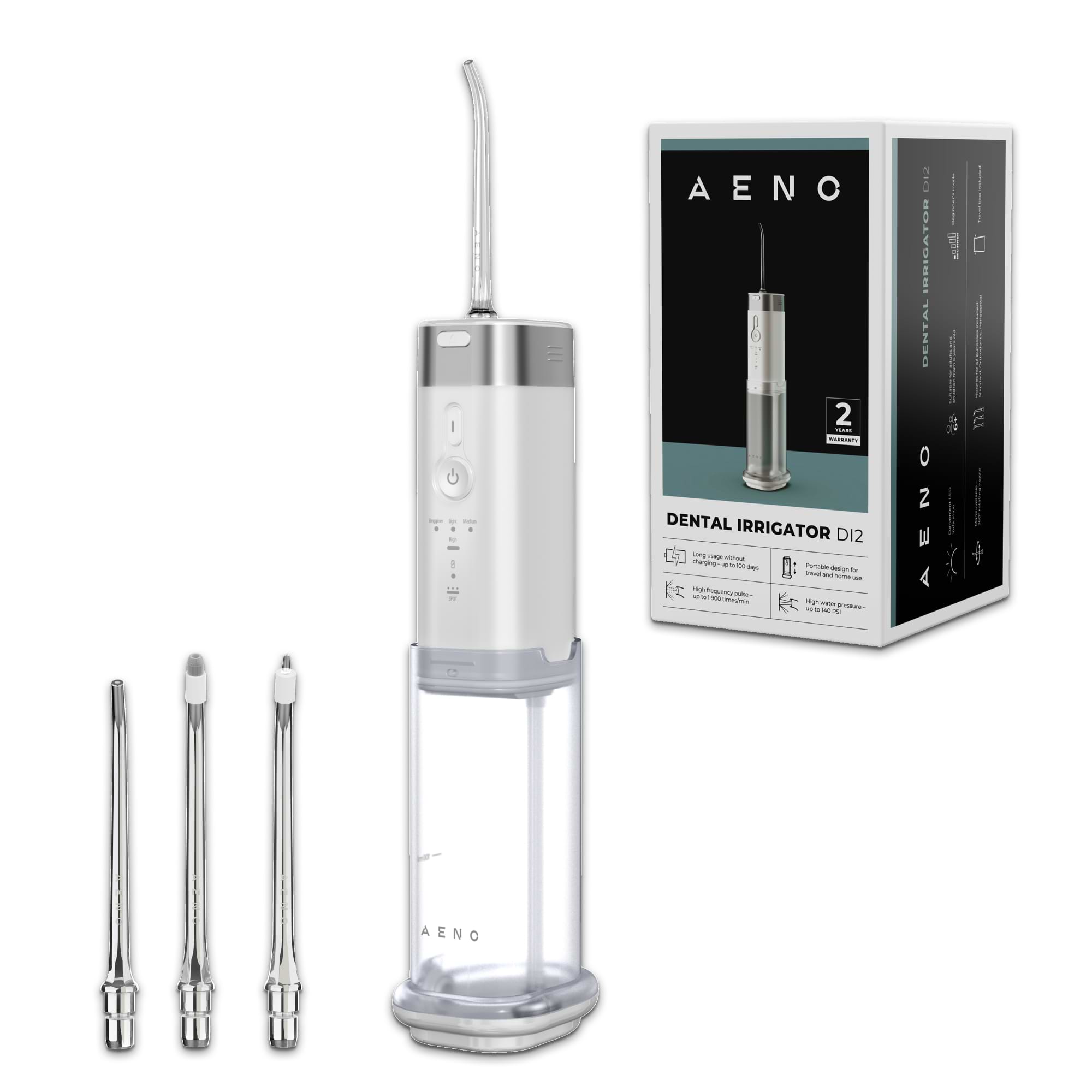 Благодаря давлению воды, достигающему 140 PSI, AENO DI2 без труда удаляет даже самые стойкие загрязнения, обеспечивая тщательную очистку десен и зубов, способствуя оптимальному здоровью полости рта