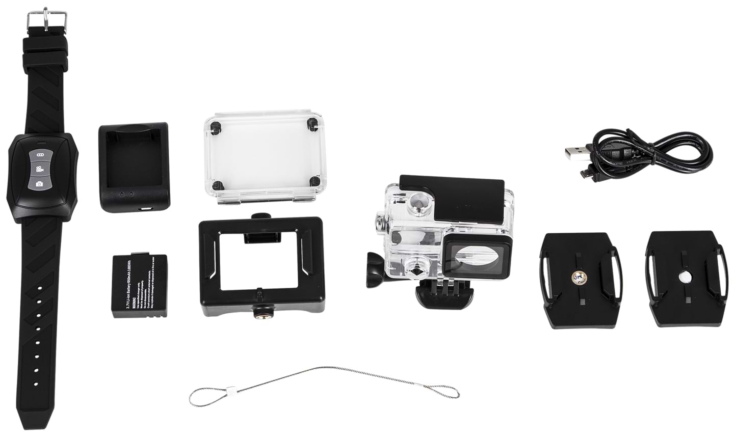 В комплект AIRON ProCam 4K входит большое много аксессуаров, которые значительно упрощают процесс съемки: водонепроницаемый бокс, крепление на руль/штатив, многофункциональные крепления, ремни, крепления на шлем, текстильные липучки, страховочные крепления и защитная задняя крышка.