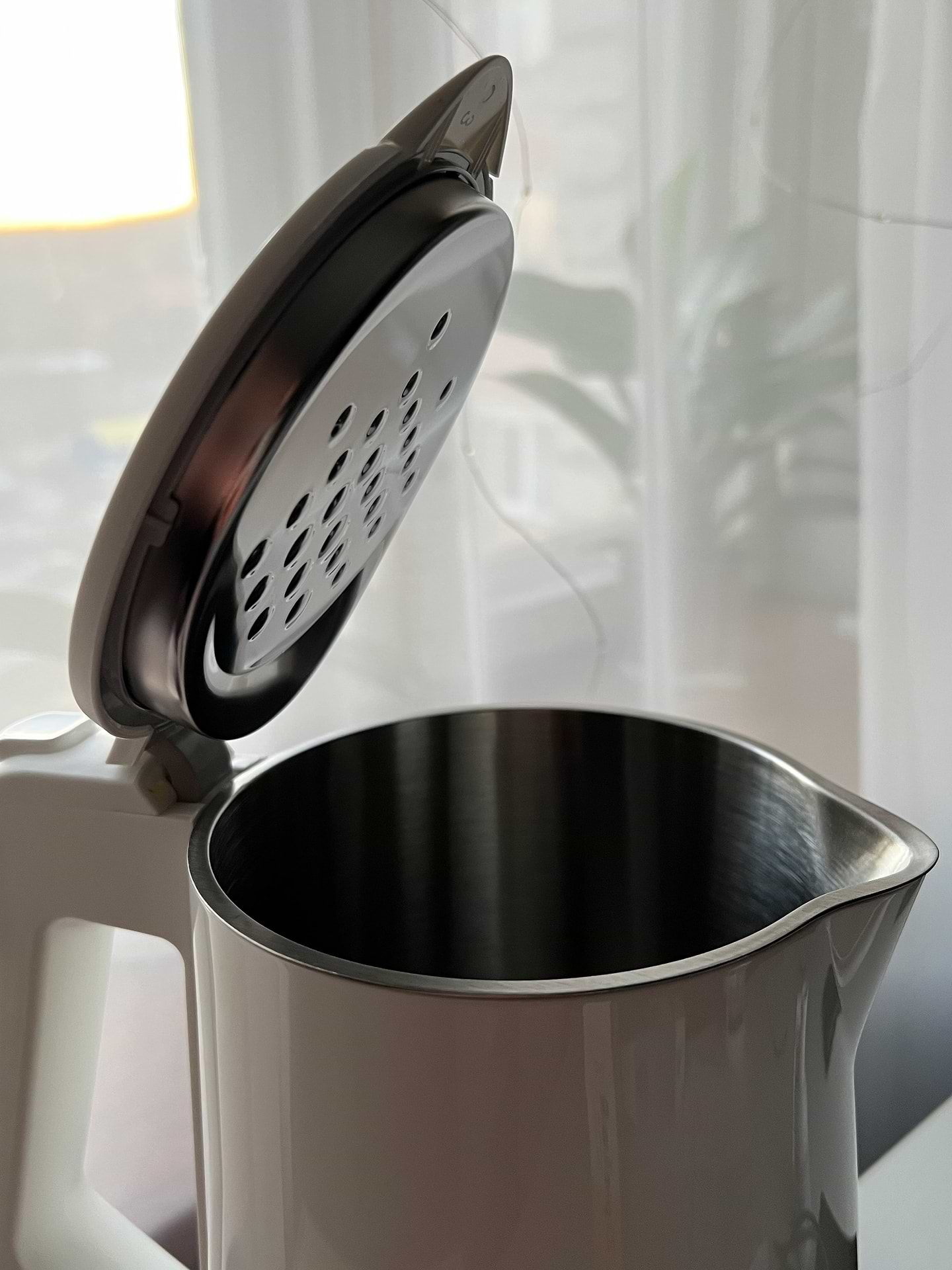 Класний чайник як по функціоналу, так і по вигляду. Швидко нагріває воду, відносно не шумний. За рахунок того що нагрівання відбувається хвилеподібно, шуму набагато менше ніж у попереднього чайника. З додатком можна регулювати температуру нагрівання. Без додатку також можна керувати чайником через сенсорну кнопку на корпусі. Приємно здивована що виробник чує думку користувачів і покращує товар - етикетку на чайнику замінили і тепер вона дуже легко відходить, не залишаючи ні сліду. В комплекті йшов білий тканевий чохол. Не знаю для чого, не типово для чайника. Єдиний мінус для мене - дисплей постійно світиться і показує поточну температуру води в чайнику. Добре було б щоб дісплей вимикався. Щодо плям на дні чайника - так, після декількох користувань зʼявились невеликі плямки. Але це не іржа, і 100% звʼязано з водою. Після промивки з розчином лимонної кислоти все зникає.