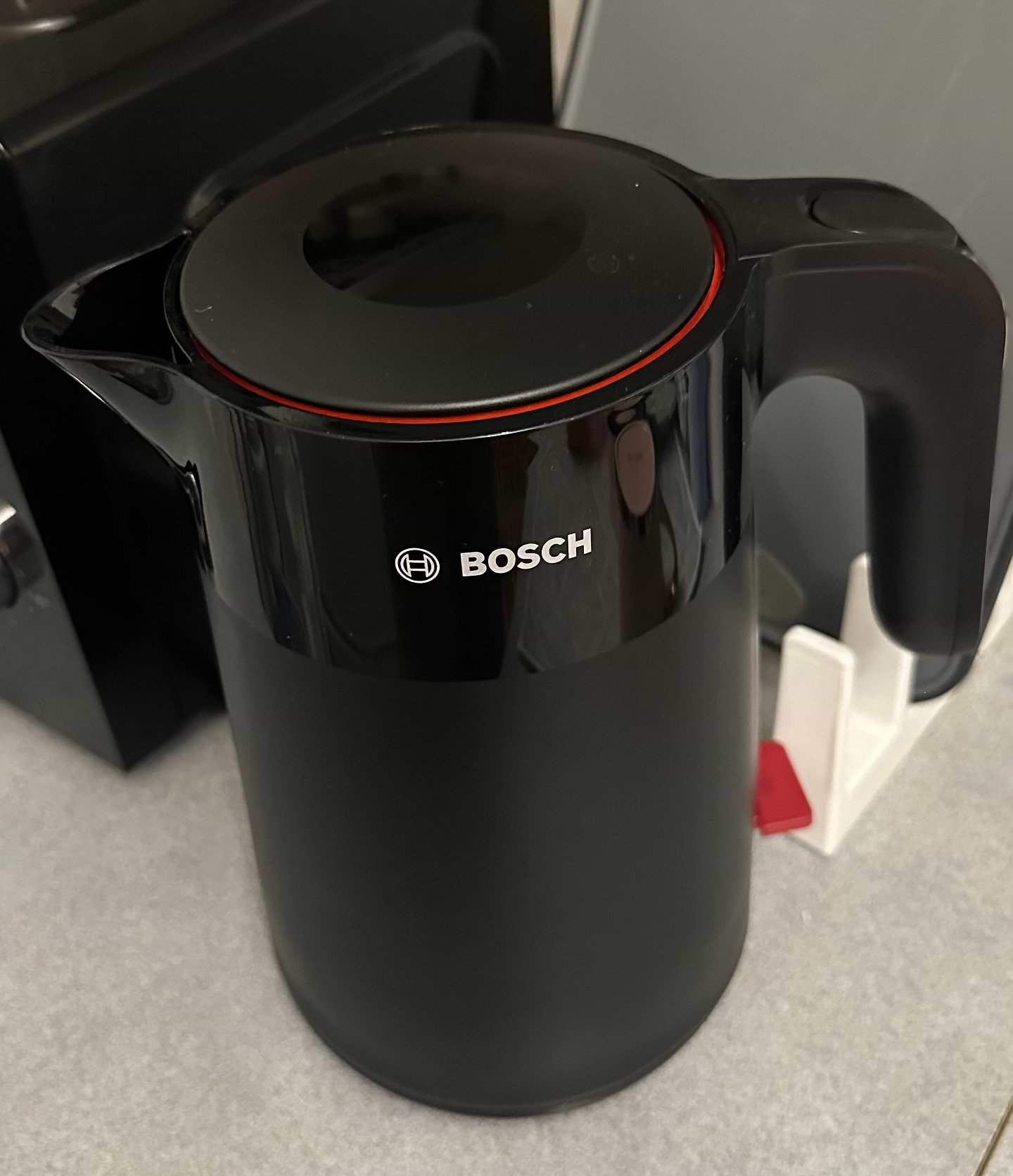 чудовий чайник. першочергово обирала по дизайну, мінімалістичний чорний матовий - не видно слідів пальців, лише верх глянцевий, але там стараємось не торкатись, щоб менше було видно відбитки. Дуже зручно тримається в руці. Класно, що шнур змотується в підставці, на кухні не видно довжелезних проводів. При першому використанні було чути легенький запах пластику, але через кілька закипань це минулось. Дуже зручно мити фільтр-сіточку, і вона гарно фіксується. Не шумний та не вмикається без води
