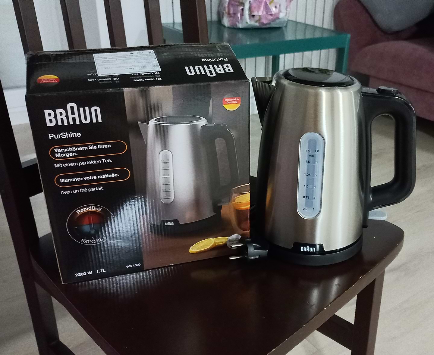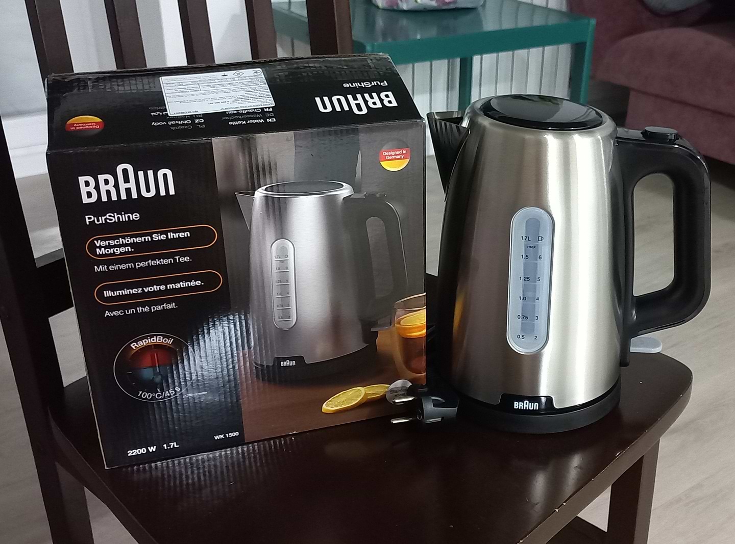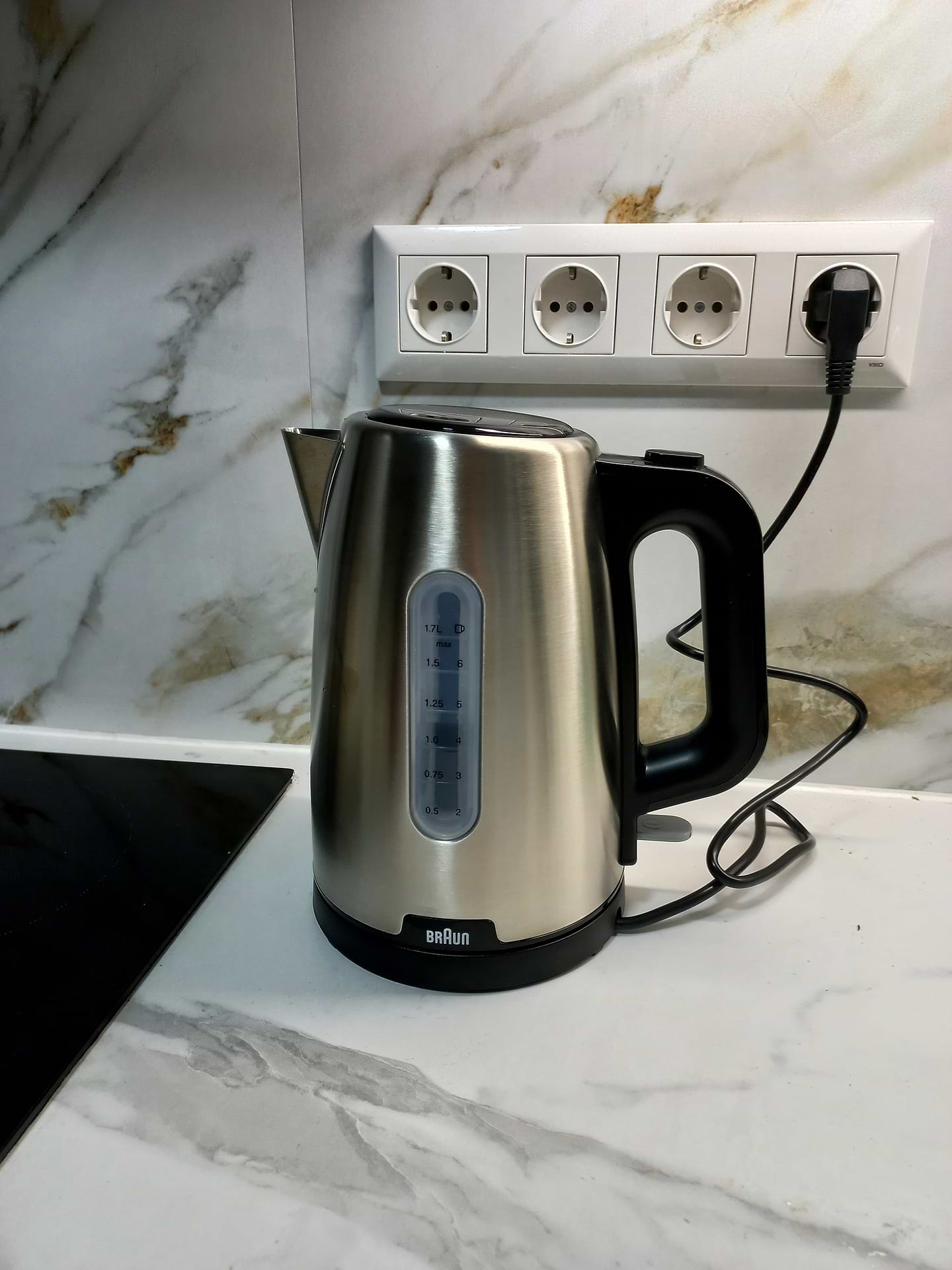 Обрали саме Braun за найдійність. Якісна збірка, міцна пластикова ручка та кришка. зовсім не важкий. Шум при закипанні незначний. Немає сторонніх запахів. Подобається захист від випадкового включання - брали дитині в гуртожиток.