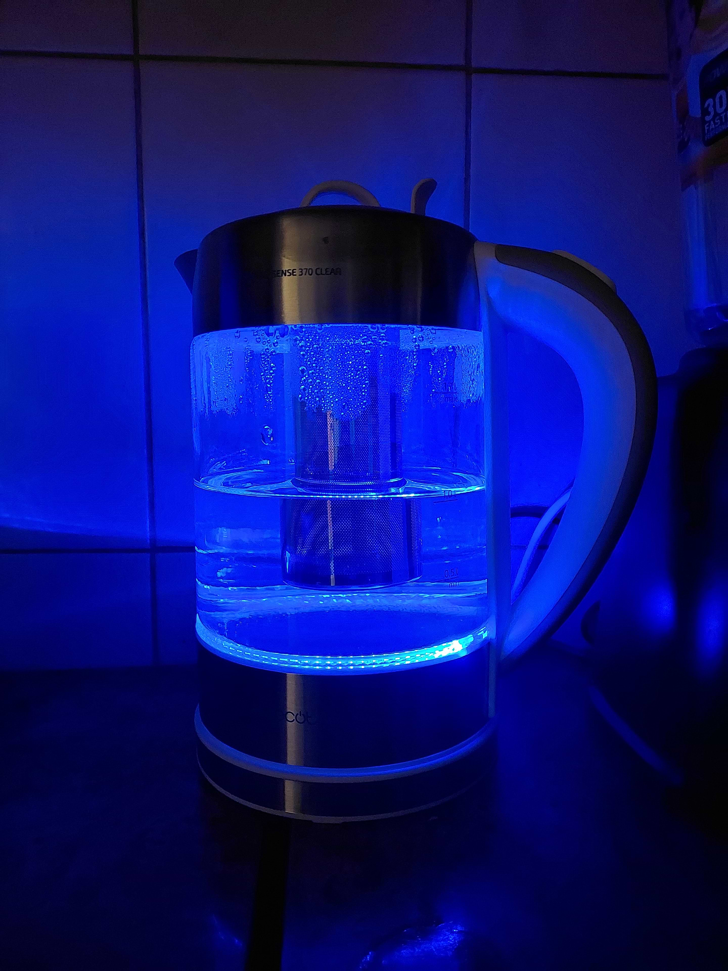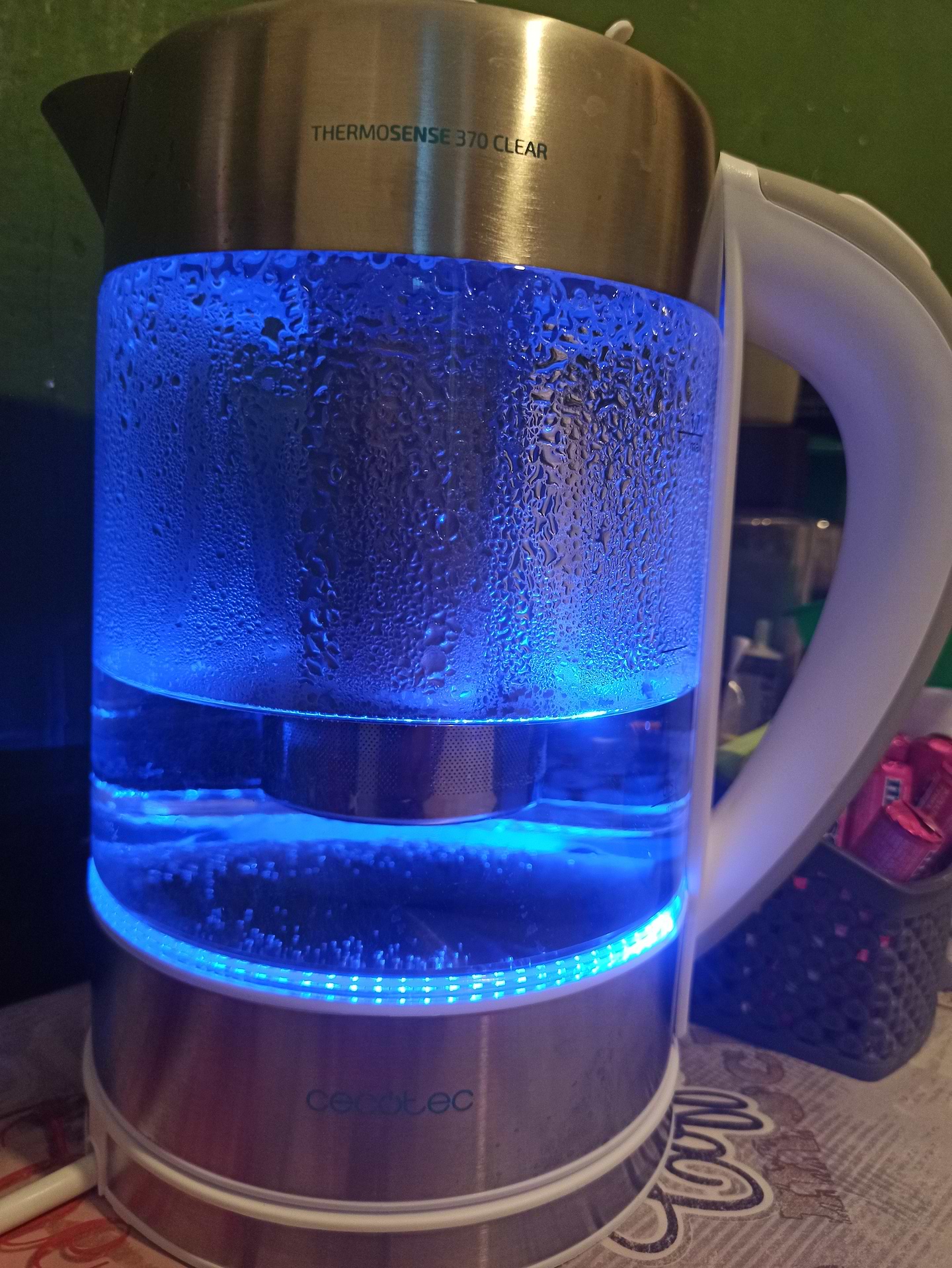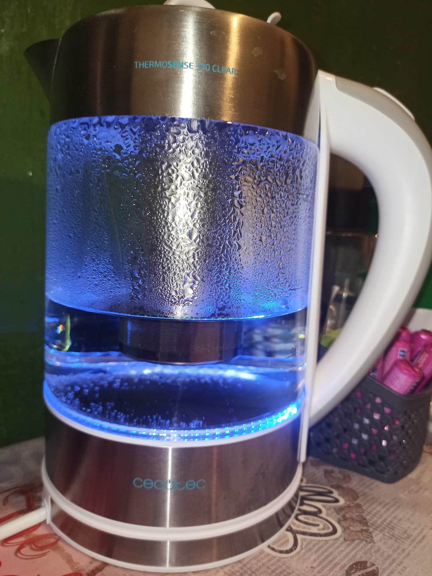 Головна перевага - безпечність. Не ввімкнеться пустий чи відкритий. Красиво підсвічується) і є ситечко для чаю) не уявляю, чи це зручно, але воно є