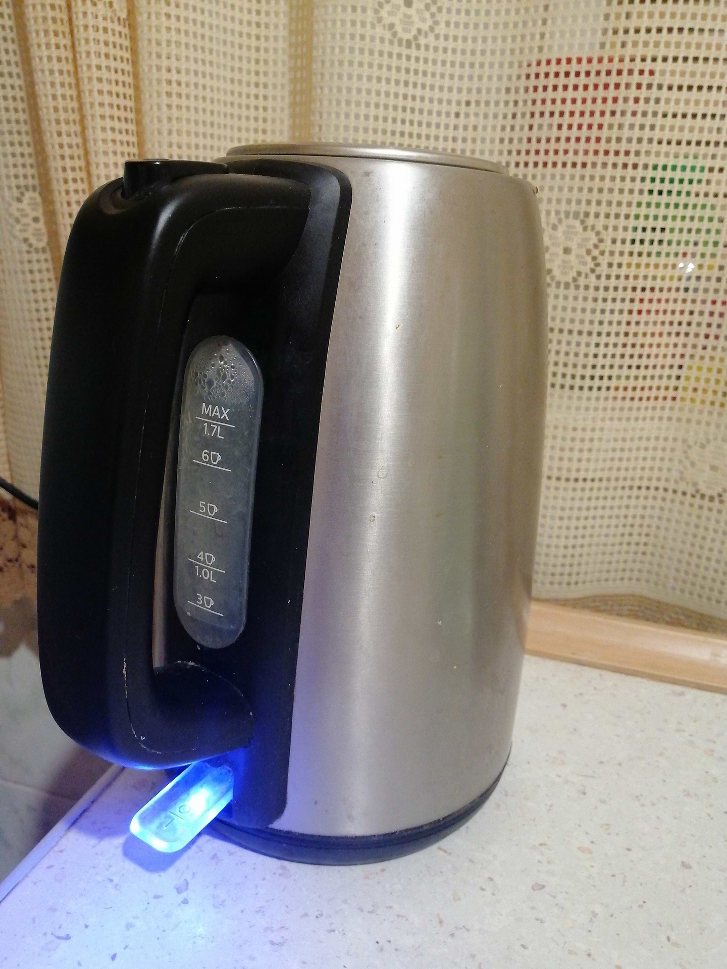 При купівлі чайника, продавець завірив, що він зроблений з первинного пластика, справив враження також дизайн чайника плюс гарна підсвітка. Вода закіпає достатньо швидко. Через пів року почав текти, після ночі, на ранок основа у воді. Використовувався до 10 раз на день!