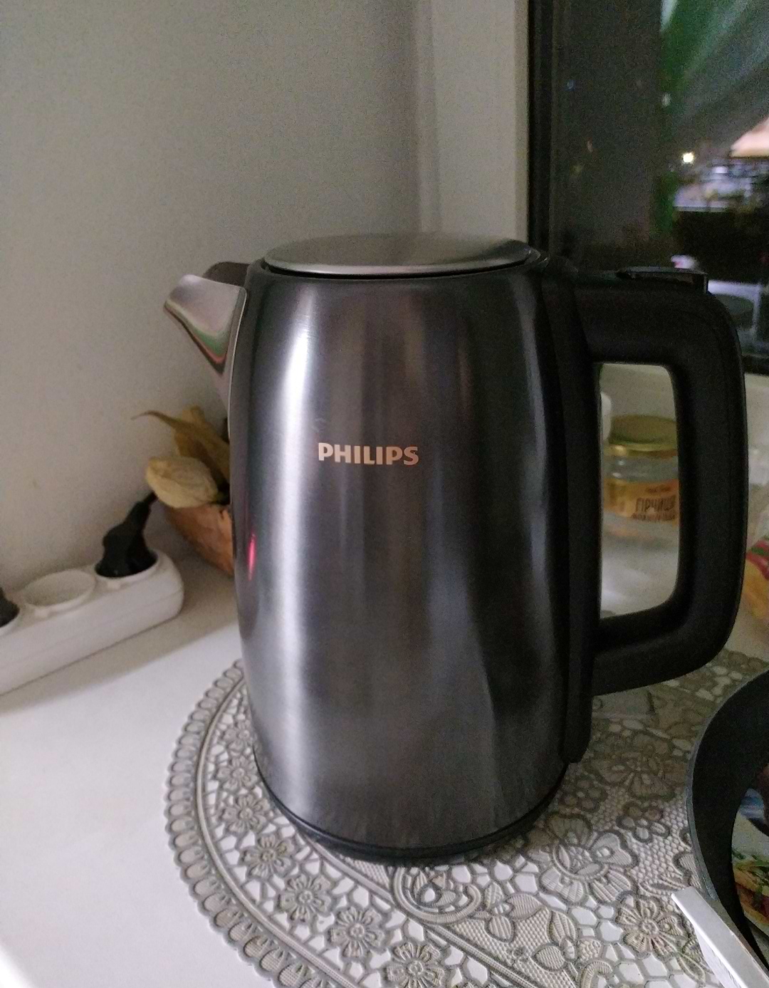 Чайник дуже сподобався.Має гарний дизайн,чудово підійшов під нашу кухню.Працює тихо,вода закіпає швидко.Сподобалось ,що кришка зверху відкривається повністю.Це дуже зручно,коли наливаєш воду у чайник.Philips -чудова фірма.Рекомендую.