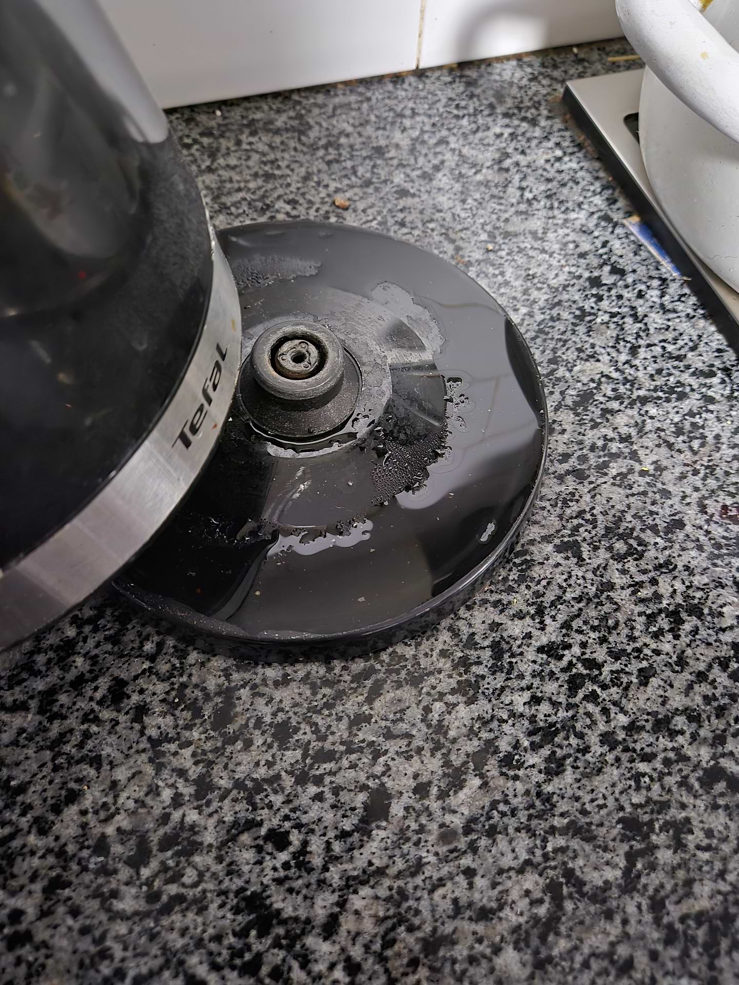 Выключите чайник из сети, дайте ему остыть и просто протрите влажной губкой.