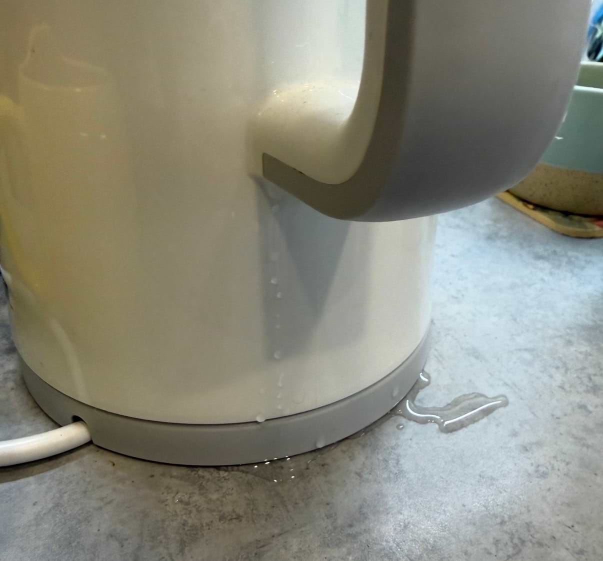 Тече вода з ручки. Конденсат, який збирається на кришці стікає в ручку, якщо кришку відкрити.