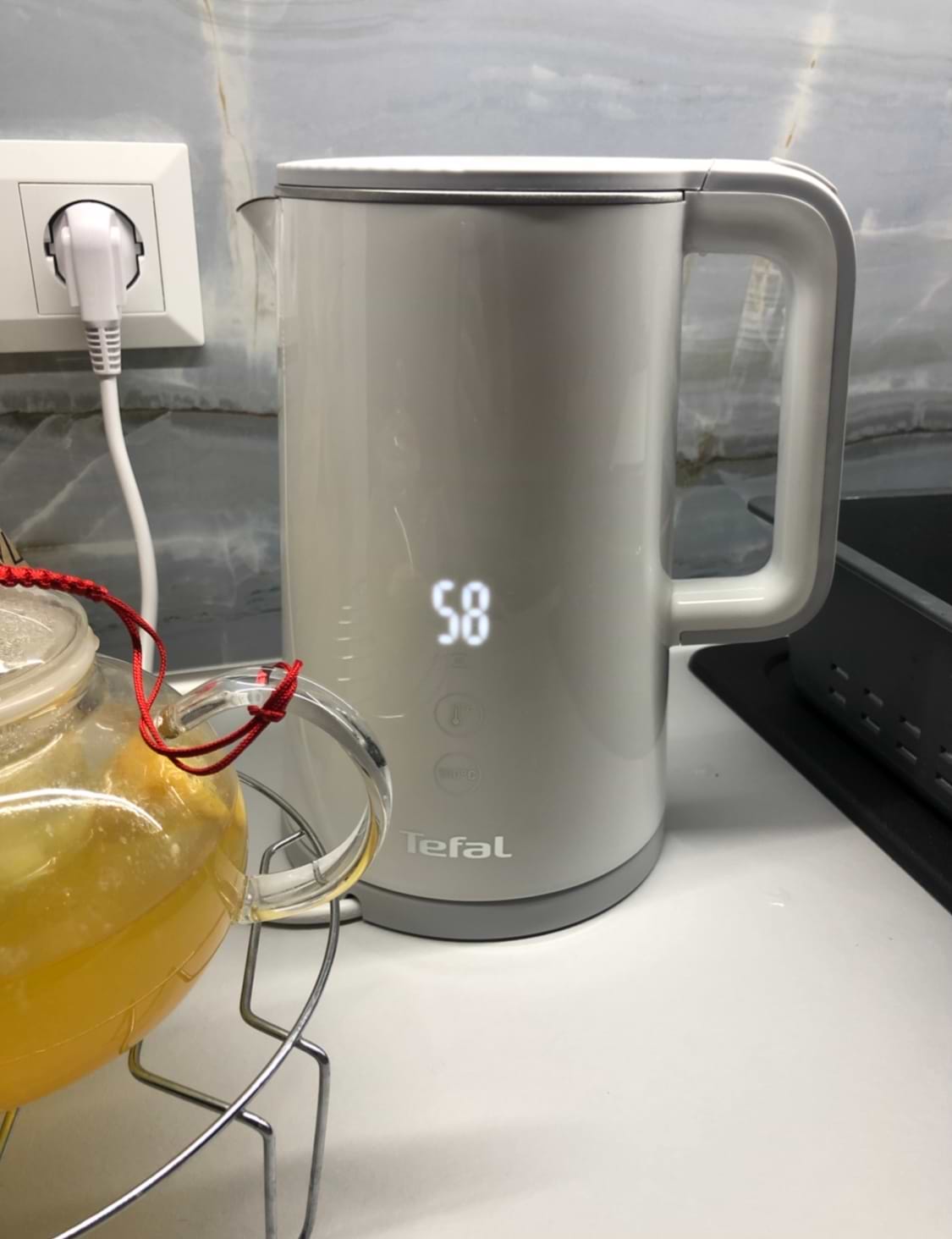 Діти не люблять пити гарячий чай, а цей чайник підтримує та показує температуру води, тепер не переживаю, що попечуться.Заварку зробила, а пити кожен сам може коли температура буде оптимальна.