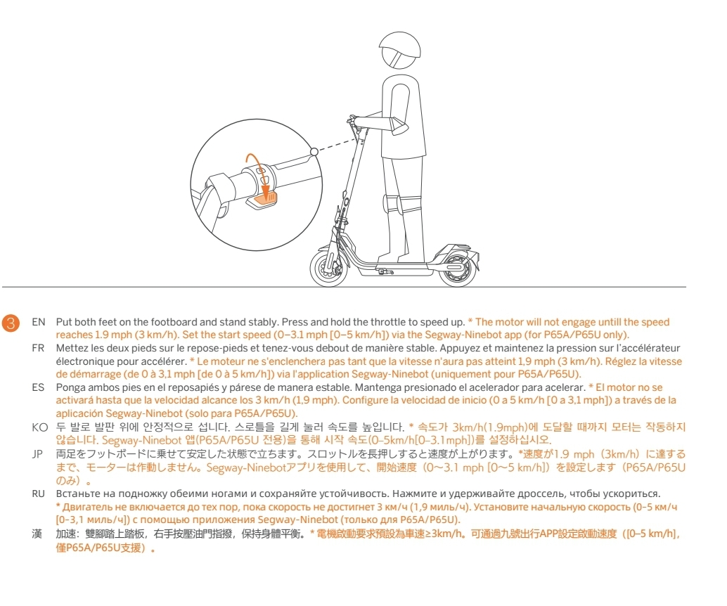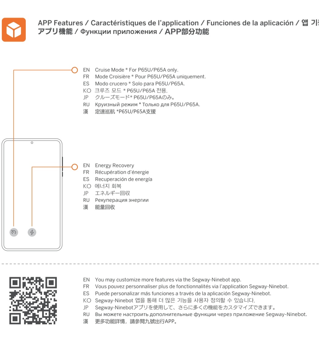Відсутність круїз контролю, режиму "Паркінг" (можливості руху з місця, не відштовхуючись ногою) саме в цієї моделі Р65Е.
