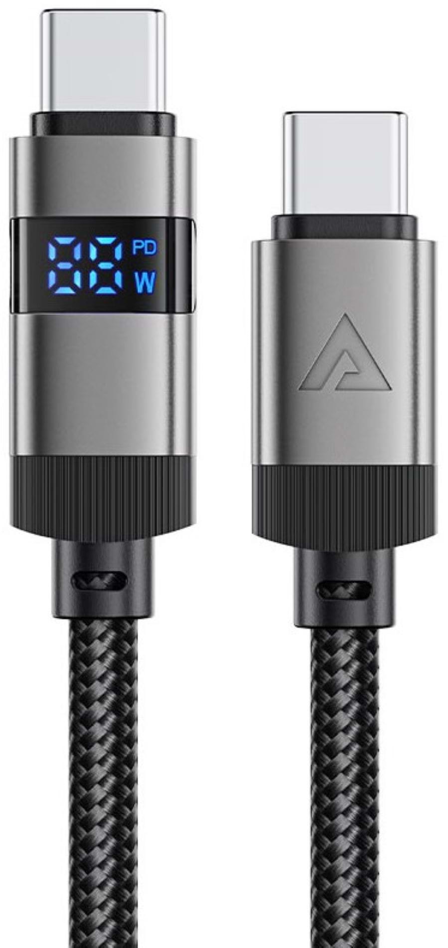 Кабель синхронизации данных AceFast USB 2.0 USB-C to USB-C, 1.2 м, 60W, 3.0A, digital display Black, C15-03 (6974316283720)