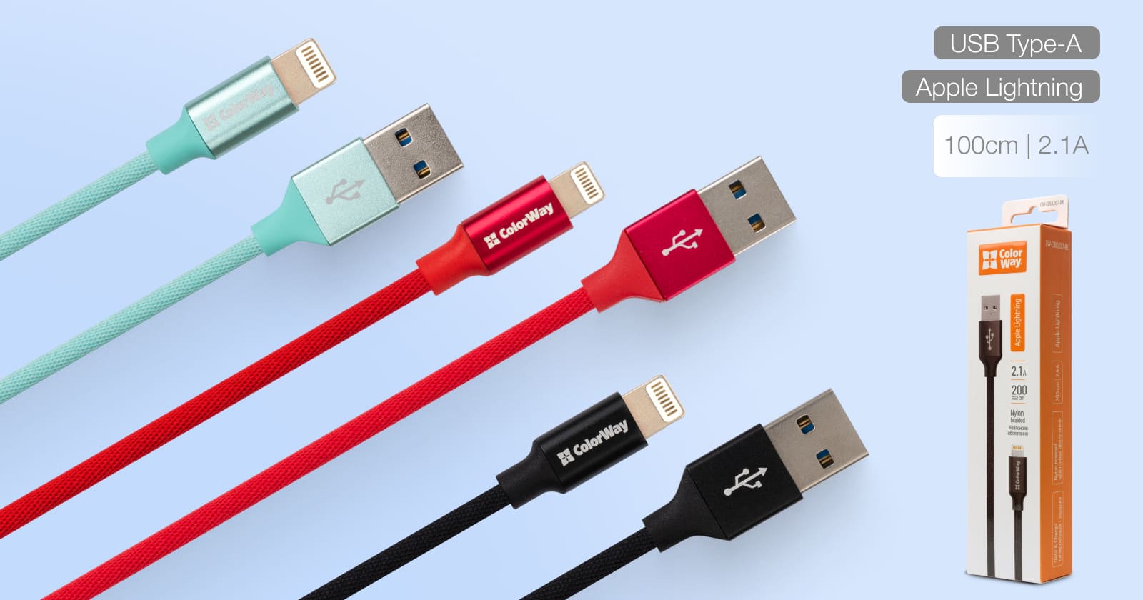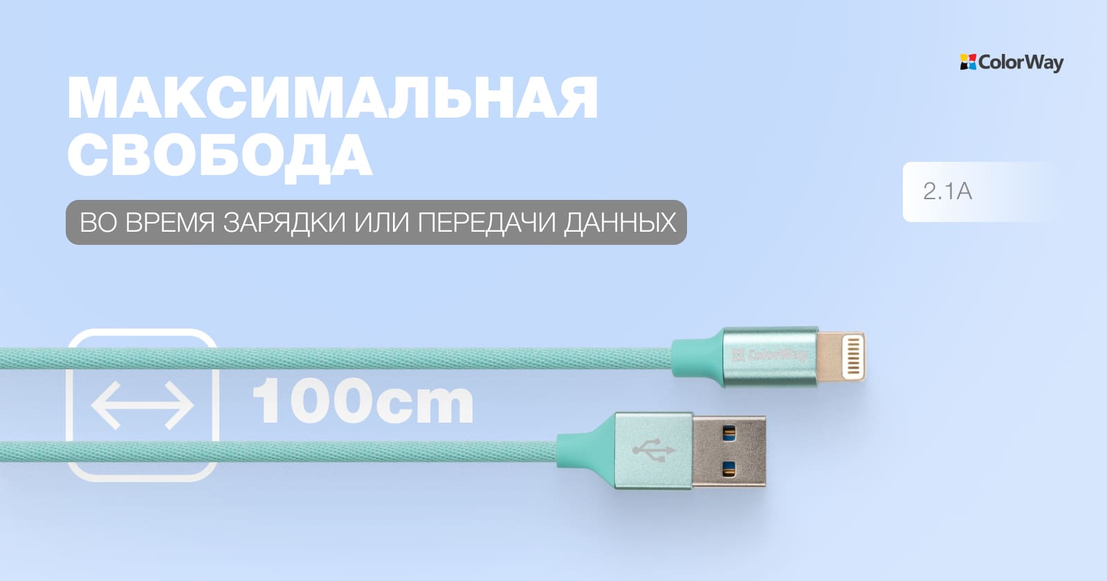 Характеристики Colorway USB-Lihgtning 1m Mint (CW-CBUL004-MT)