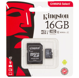 Карта памяти Kingston microSDHC 16GB C10 UHS-I + SD адаптер (SDCS/16GB)