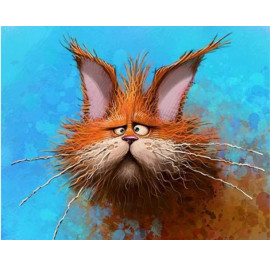 Решили купить этого смешного кота. Он безумно похож на нашего домашнего. Картина среднего уровня сложности. Ребенок достаточно долго возился с ней. Вышло очень круто. Набор хороший, в нем есть краски, кисти, рамка, холст. В общем за такие деньги набор бомба, не жалко и больше за такой отдать.