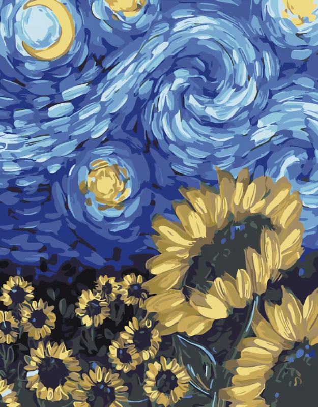 Все о Картина по номерам Strateg Подсолнухи в стиле Ван Гога 40х50 см (DY271)