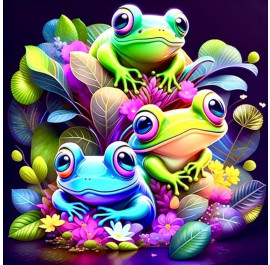 Картина по номерам Strateg Разноцветные лягушонки 40х40 см (AV4040-3)