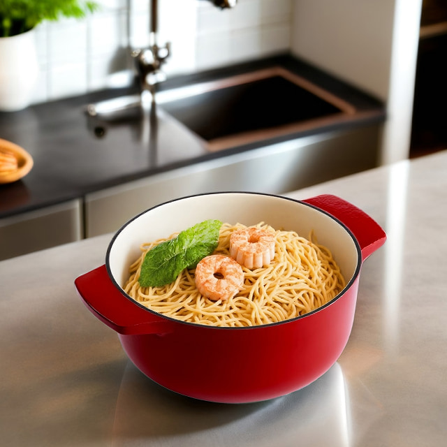 Откройте для себя идеальную чугунную кастрюлю от KitchenAid - надежную, долговечную и стильную. Благодаря равномерному распределению тепла и изысканному дизайну она станет незаменимым помощником в приготовлении самых вкусных блюд.