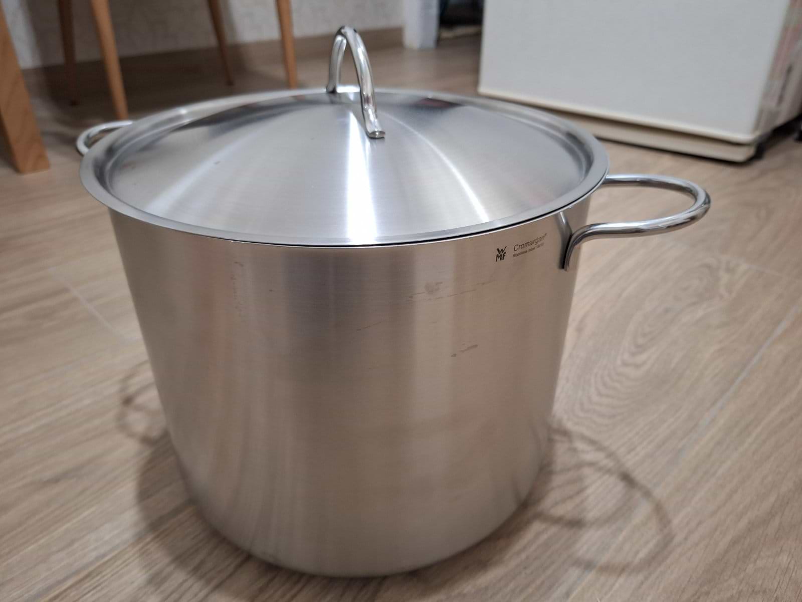 И наконец встретила WMF 795386030 28 см, 14 л. Сейчас вообще довольно сложно найти в продаже хорошую и качественную посуду, поэтому огромное спасибо Комфи, что у них осталась в продаже еще посуда WMF и по адекватной для WMF цене.