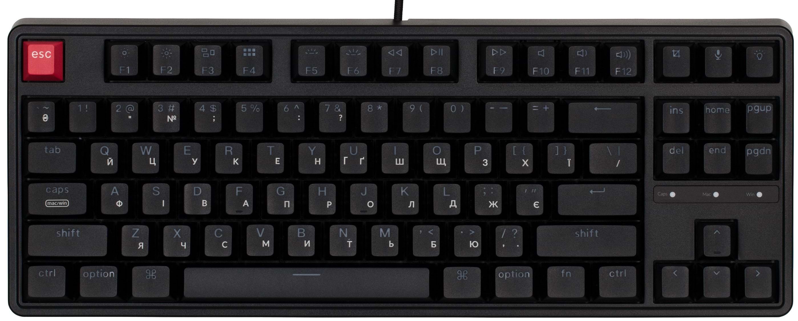 Характеристики Keychron C3 Pro V2 87Key, K pro Red, USB-A, QMK, Hot-swap, 8K, EN/UKR, RGB Black (C3PX-H1-UA)