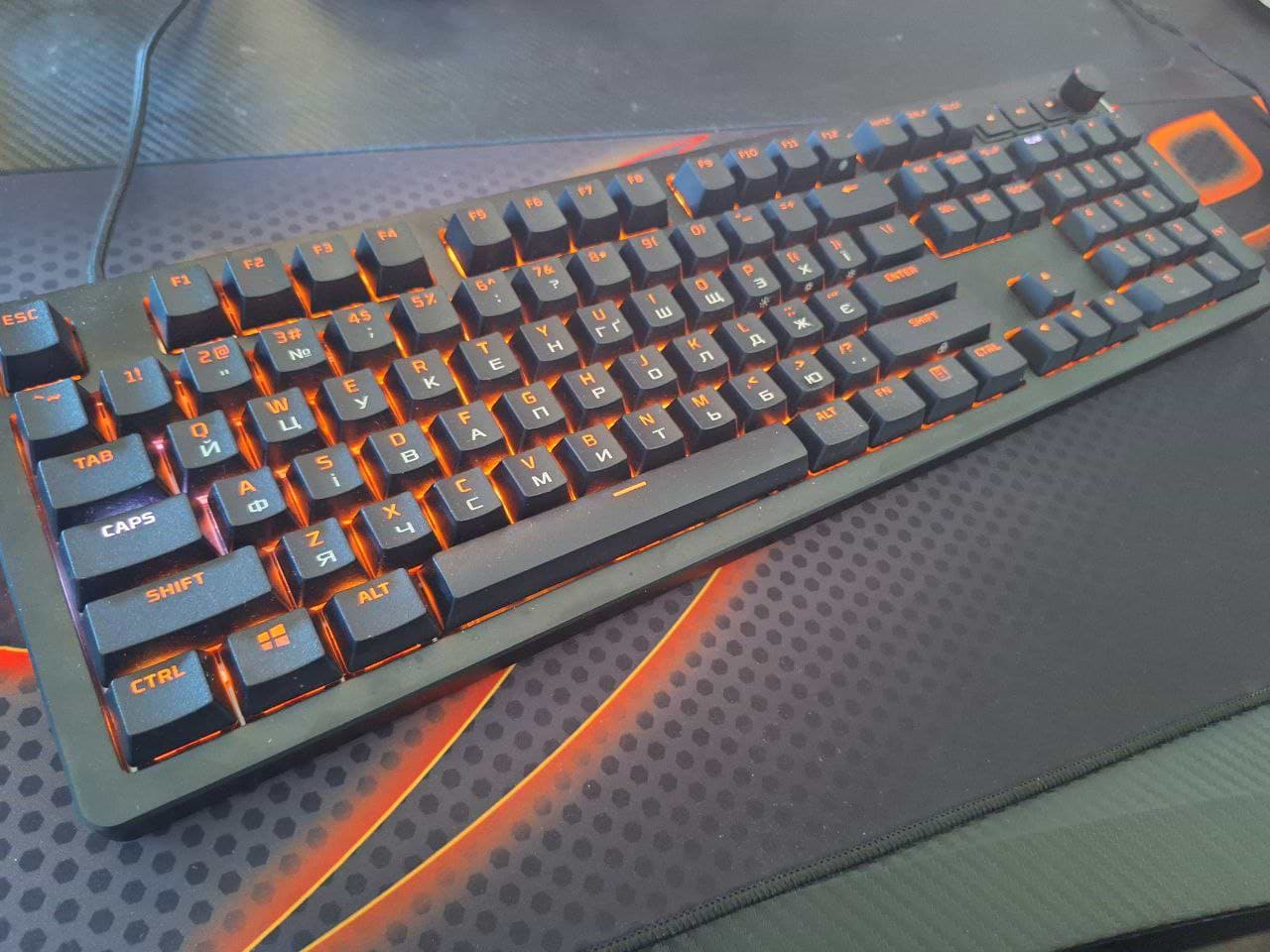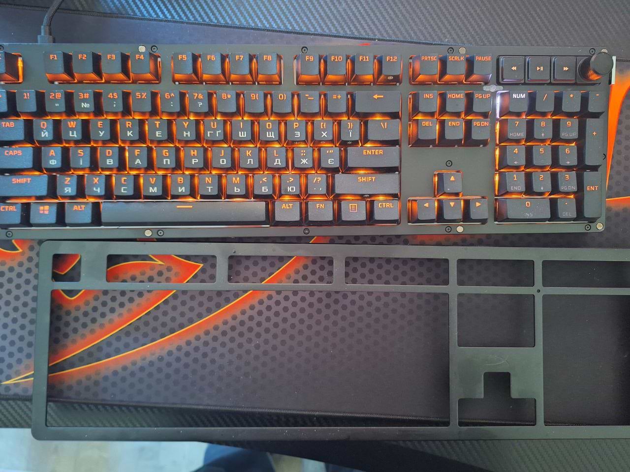 На відчуття клавіші на цій клавіатурі приємніші, трохи тихіші ніж на минулій клаві. Сподобалась панель в верхньому правому куті з регуляцією звуку та управлінням медіа (кнопки паузи, перемотки), дуже зручно. Підсвітку можна налаштувати практично як завгодно у ПЗ hyperx ngenuity.