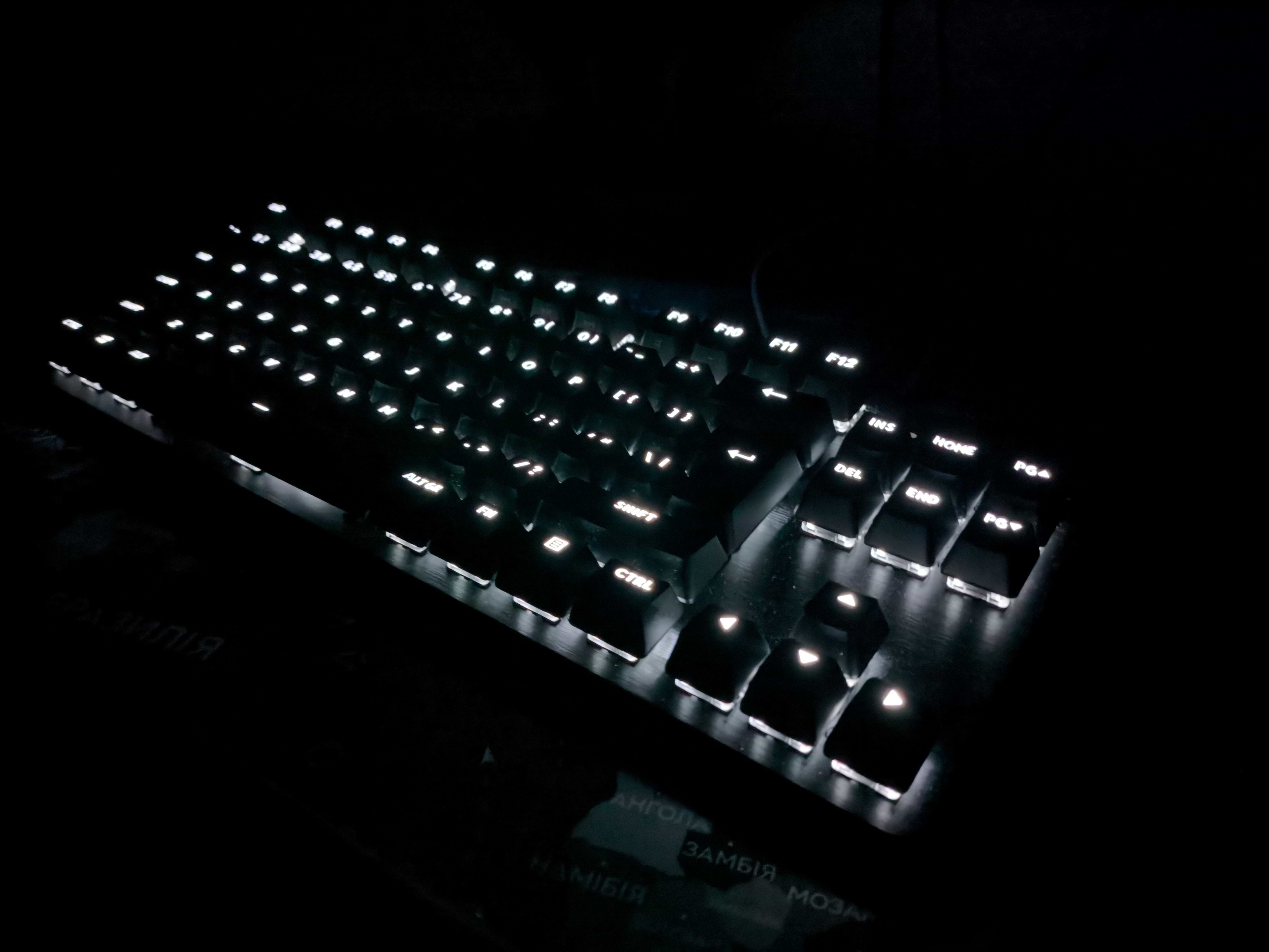Якісний та приємний на дотик матеріал, адаптивна біла підсвітка, збалансована гкчгість при натисканні клавіш.