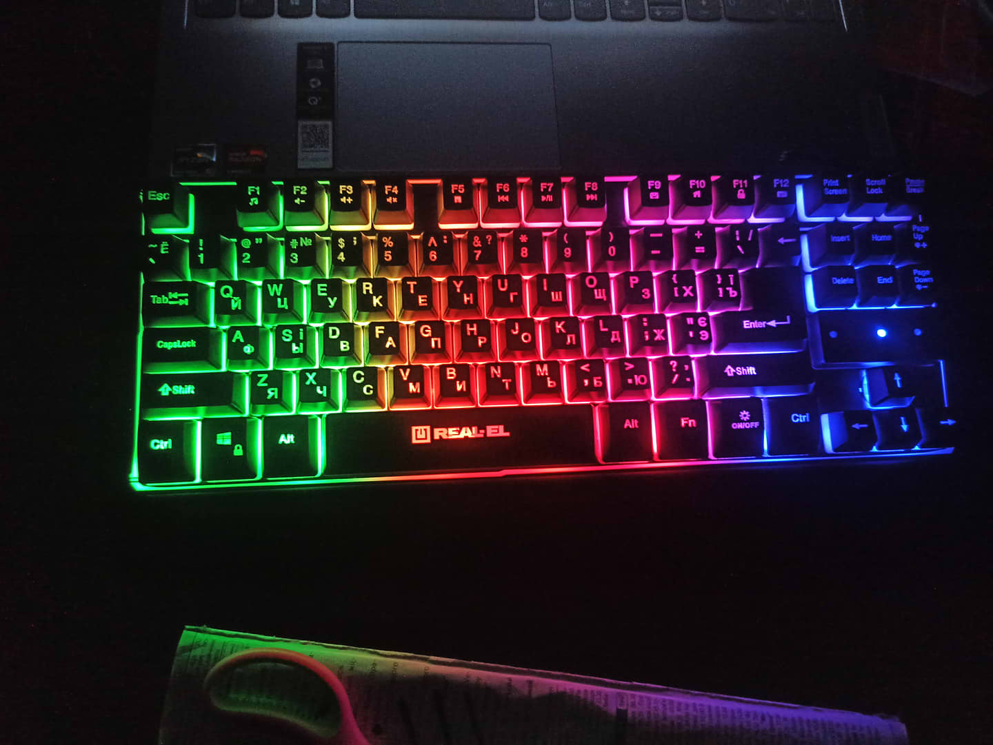Користуюсь більше року. Цілком задоволений. Вночі видно всі символи завдяки підсвідці, яка регулюється. Мене суб'єктивно влаштовує статична немаксимальна яскравість. Також є режим:поступова зміна яскравості від мінімальної до максимальної. Доволі немаленька вага клавіатури та пристуні гумові ніжки, завдяки чому клавітура не рухається по столу - це дуже добре. За рік неінтенсивного користування не поздирались написи к клавіш - це норм. Звук клавіш для такої клавіатури достатньо тихий та натиск усіх кнопок рівномірний і без перекосів - мене влаштовує. Тут немає цифрової клавітаури, яка тільки займає лишнє місце на столі - для мене це було важливо. Загалом, на мій погляд, цілком нормальний, який коштує цих грошей, але не дорожче.