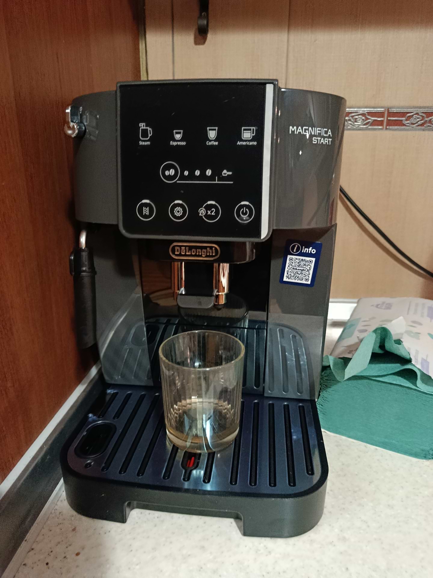 Працює тихо, нагрівається швидко, управління інтуїтивно зрозуміле. Молочний капучинатор робить дуже ніжну піну — капучино та латте просто казкові. Об’єм контейнера для води достатній, чистити та доглядати легко, все знімається та миється без проблем.