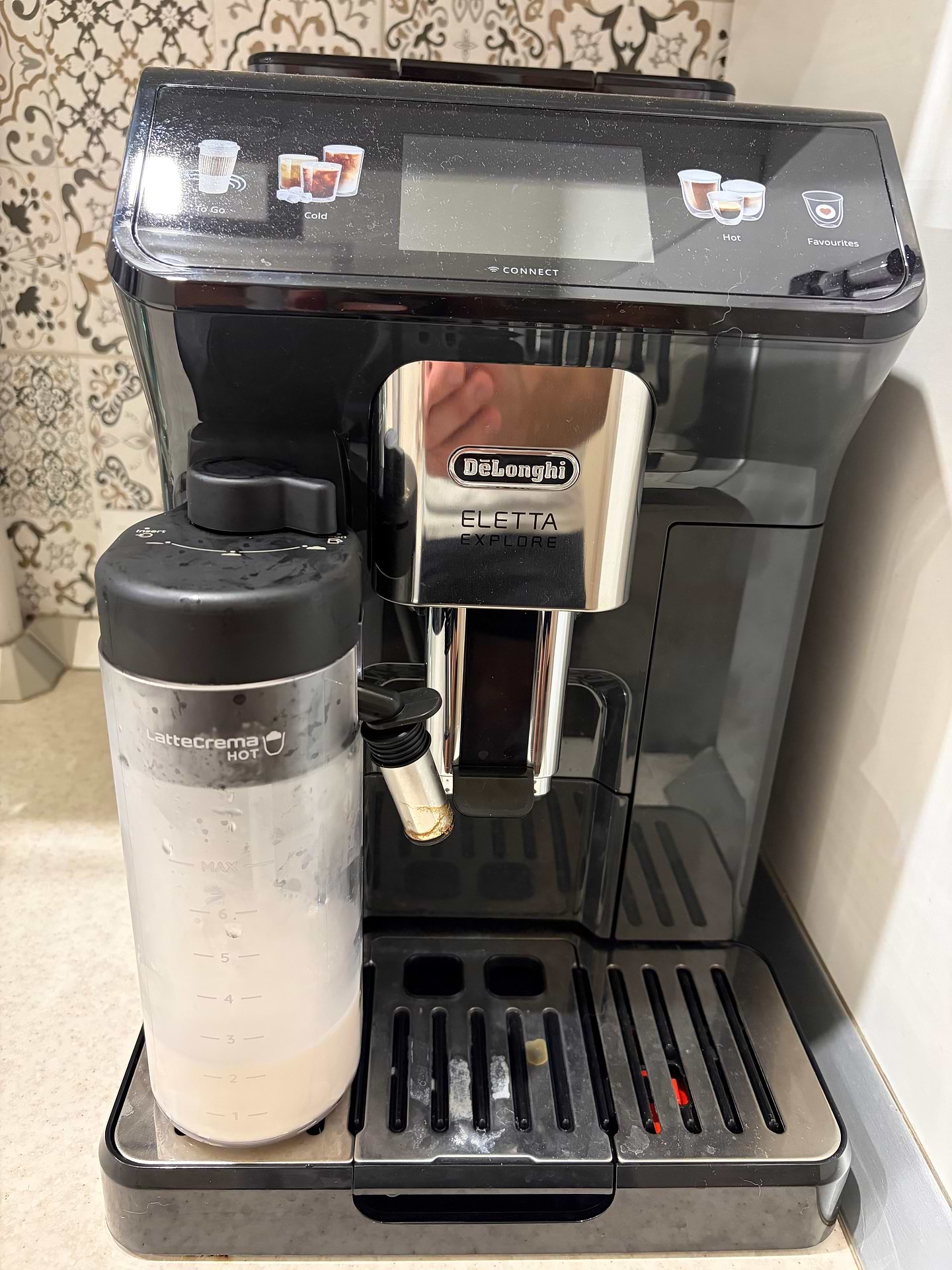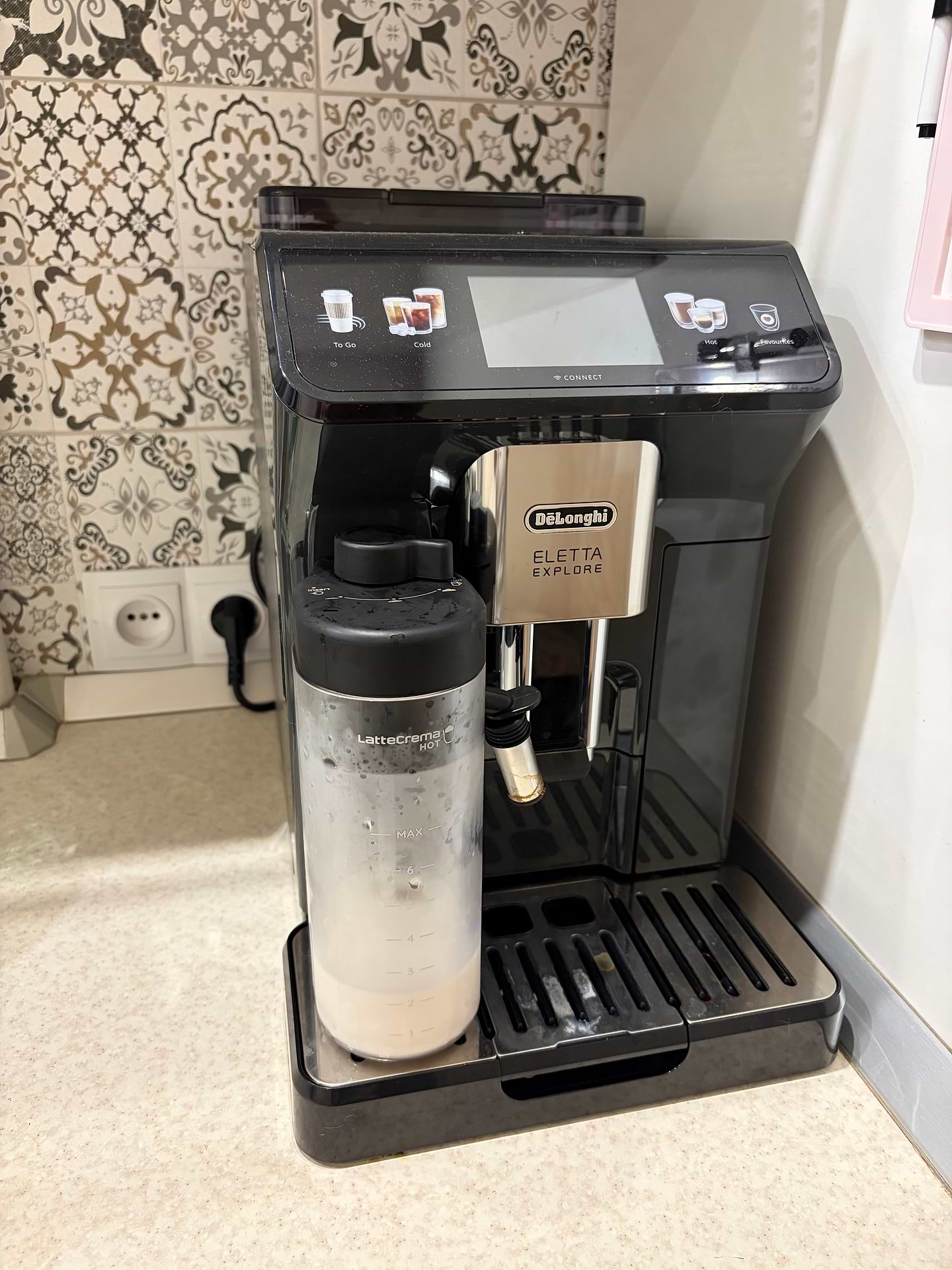 Работает и с зерном, и с молотым кофе, что тоже огромный плюс. А дисплей — это вообще что-то космическое: самый современный экран, который я видела среди кофемашин. Всё интуитивно, красиво, как смартфон.