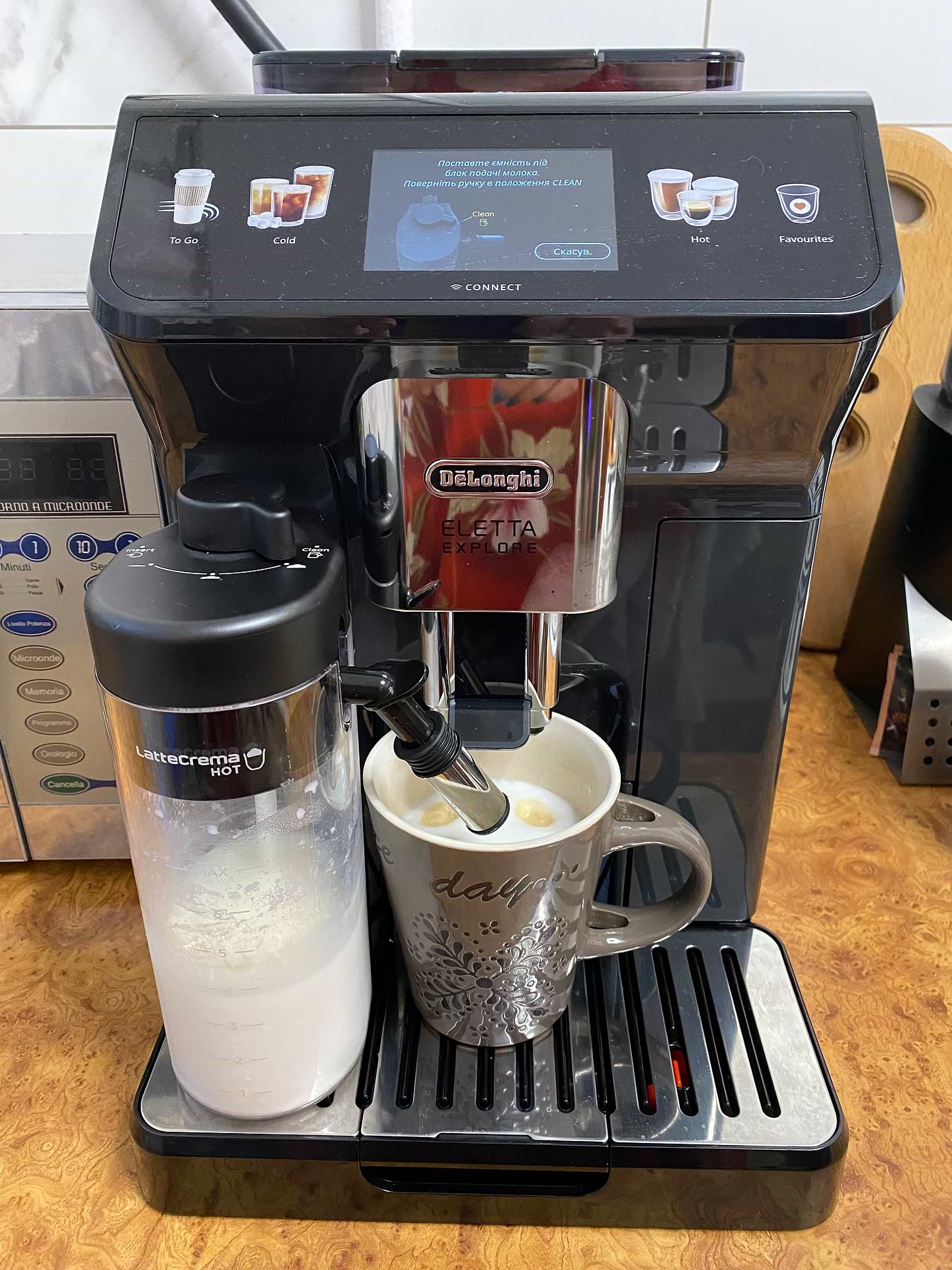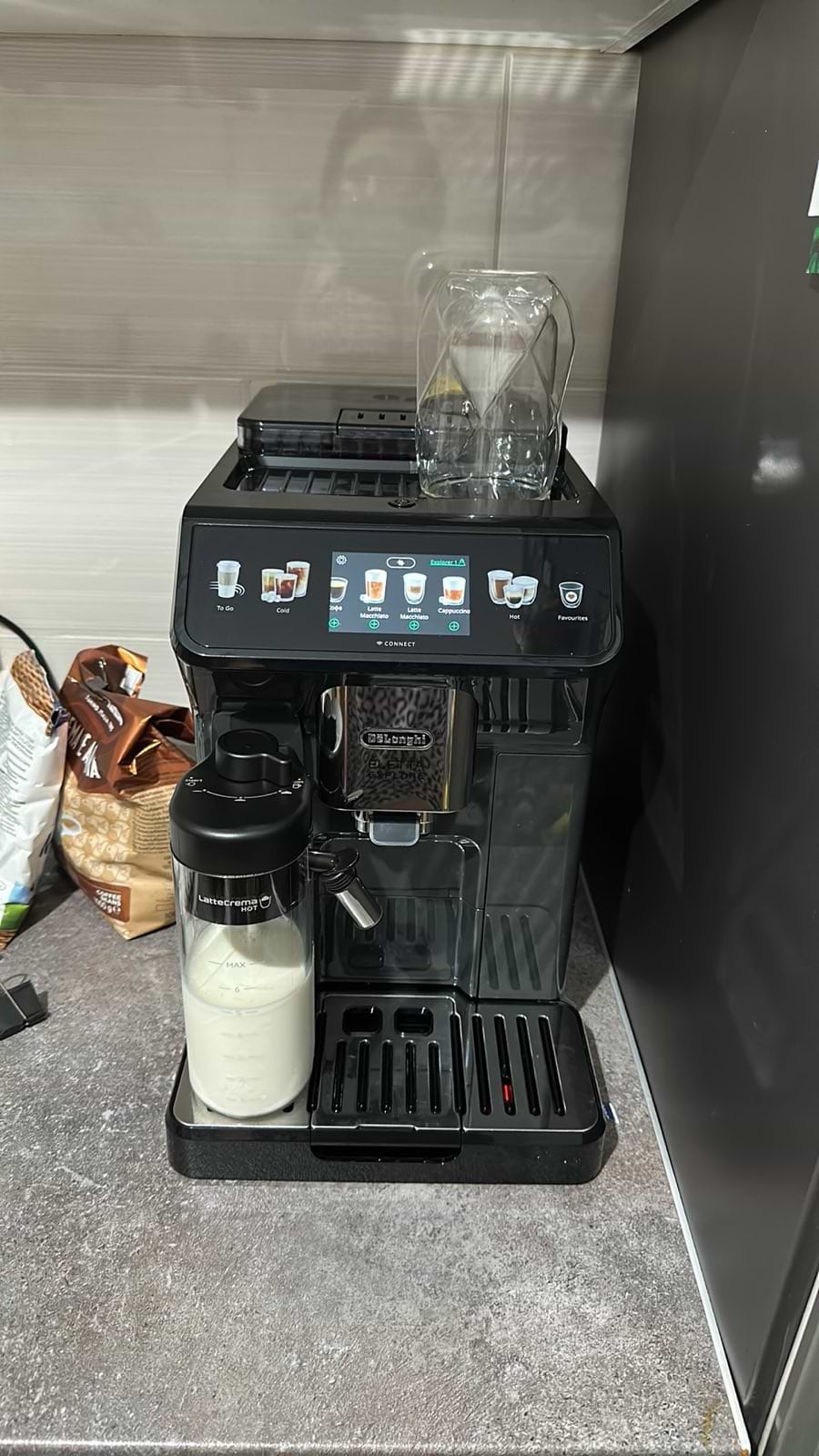 Придбали дану кавомашину неділю назад. Дуже давно хотіли саме іі. Кава смачна, пінка на капучино супер, а ще вона дуже розумна- все підсказує, що робити, навіть пише, що молоко поставити в холодильник)
