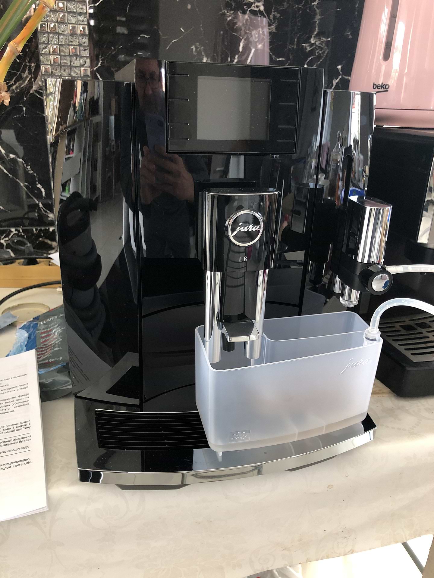 Это лучший вариант для дома из того, что можно придумать! Если отмести бытовой ширпотреб саеко филипс и делонги, который сияет экранами, но кофе готовит на троечку и рассчитан на два года службы (хотя явно это и не указывают), то остается только Швейцария где на одном заводе собирают Мелита, Невона, Миле, Юра. Все они хороши и достойны! Мелита с Невоной используют старый проверенный заварочный блок и Невона самая продаваемая в штатах иевропе, Юра использует новую разработку с винтовым пресом и камерой от 5 до 16г. И это ее супер +, Вы можете играться не только помолом, объёмом воды, но и порцией кофе. Е8 это максималочка для дома, больше и дороже не нужно, т.к. там такой же узел, а наращивают только обьем воды и контейнер для отходов. Юра е8 это максимально приближенный кофе к профи рожку, для которого еще нужен бариста с правильно растущими руками :)