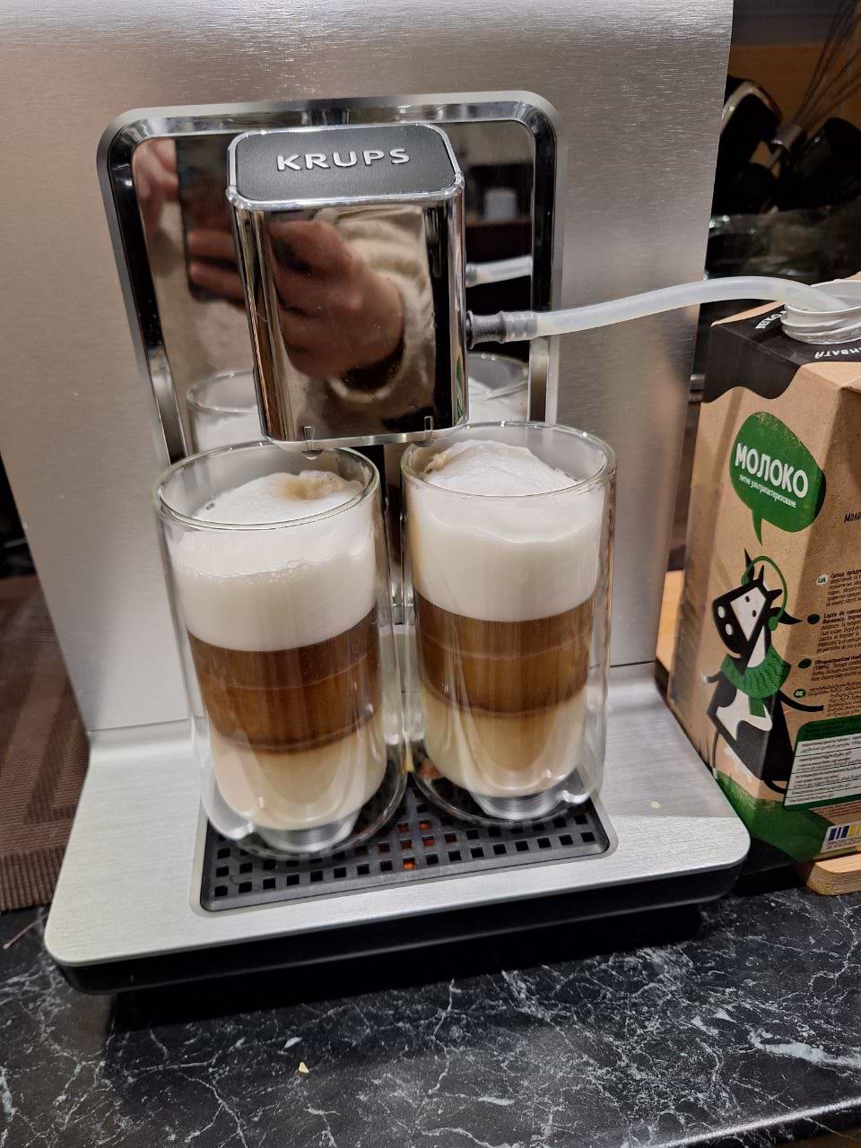 Найсмачніше лате-мак'ято. Ця кавова перетворює кожен ранковий ритуал кави на свято. Молочна піна висока, а смак кави як в реальній кав'ярні. Догляд досить простий і машина сама допомагає підказками, що потрібно зробити.