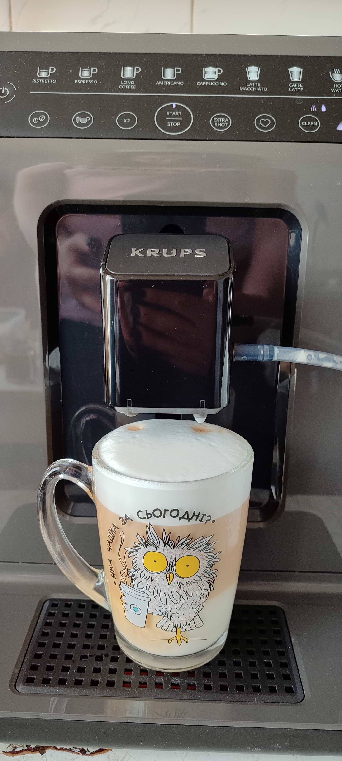 Це тепер сама улюблена техніка вдома! Готує каву смачніше ніж в кав'ярні. Коли треба долити воду, каву чи прибрати жмих зупиняє роботу повідомляє, після чого відразу без нажимань продовжує. Робить дуже м'яку і стійку піну! Дуже подобається кавоварка!