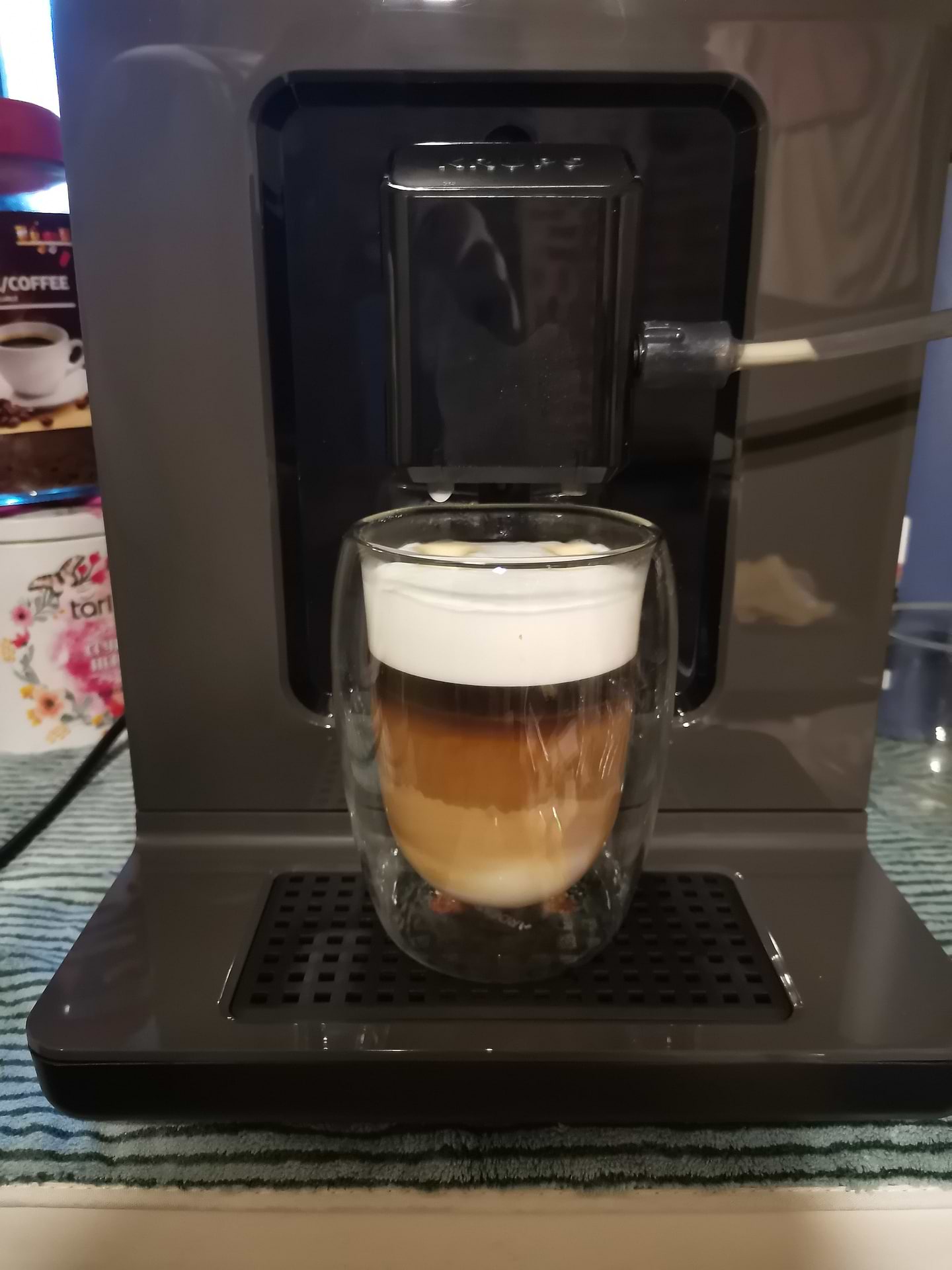 Кофемашина отлично справлянться со всеми напитками , молочные напитки вообще топ , густая и высокая пенка , зерна даже не дорогие делают хорошее кофе. Покупали на черную пятницу со скидкой и рострочкой