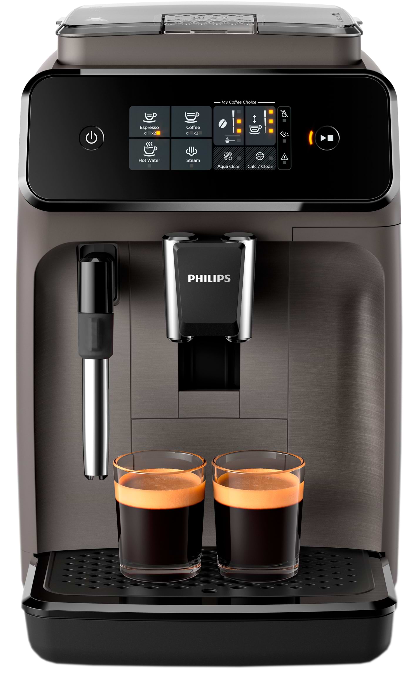 Нічого зайвого. Можливість обирати міцність та обʼєм напою. Для любителів лате робить розкішну молочну піну.