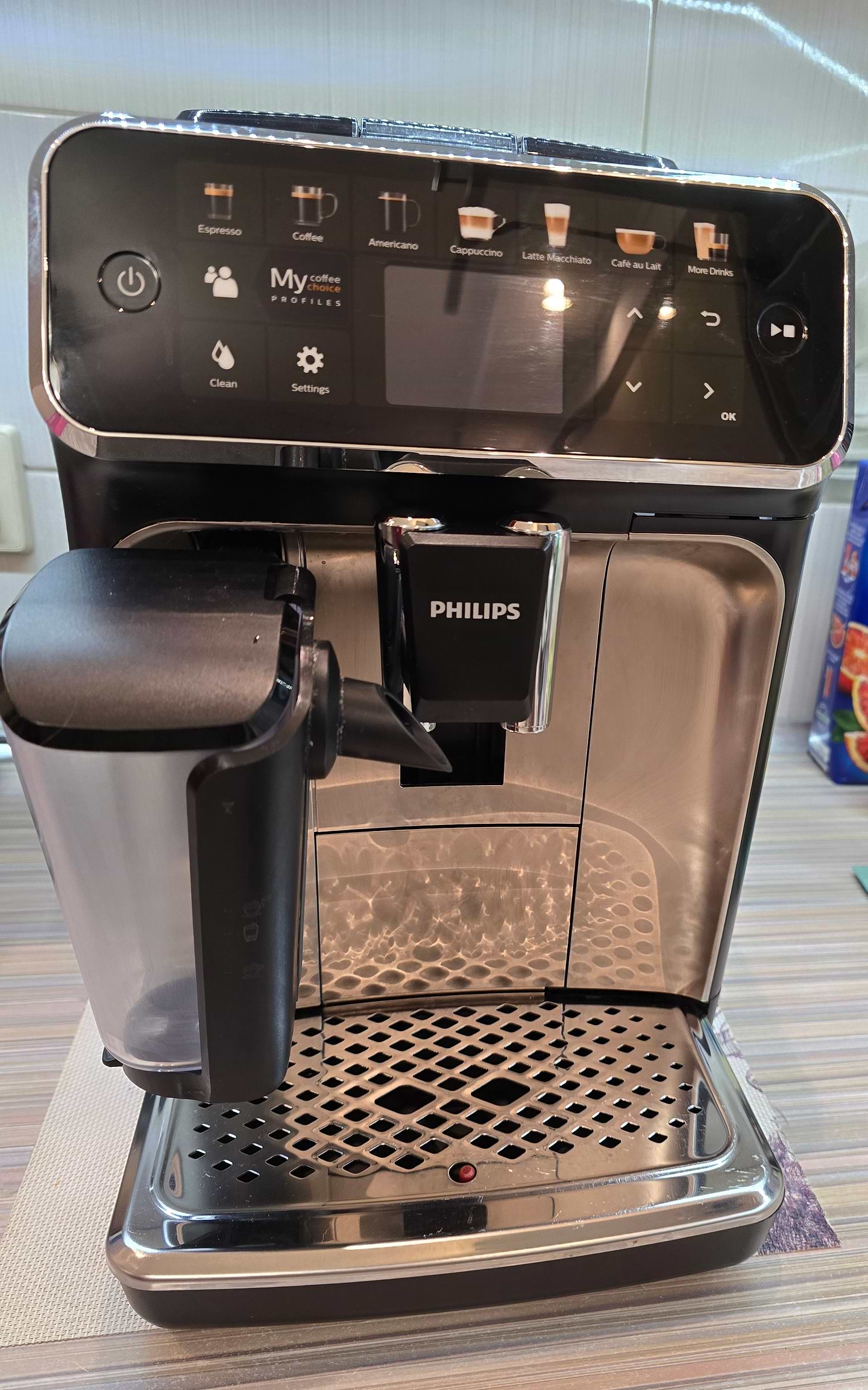 Вже більше року користуємося кавомашиною Philips EP5447/90, яку придбали безпосередньо в магазині Comfy. Дуже функціональний пристрій. Всі види напоїв ще не пробували — в основному готували класичні: Coffee, Americano, Cappuccino та Cafe au Lait. Машина зручна й легка в обслуговуванні та вже протягом року щодня радує смачною кавою.