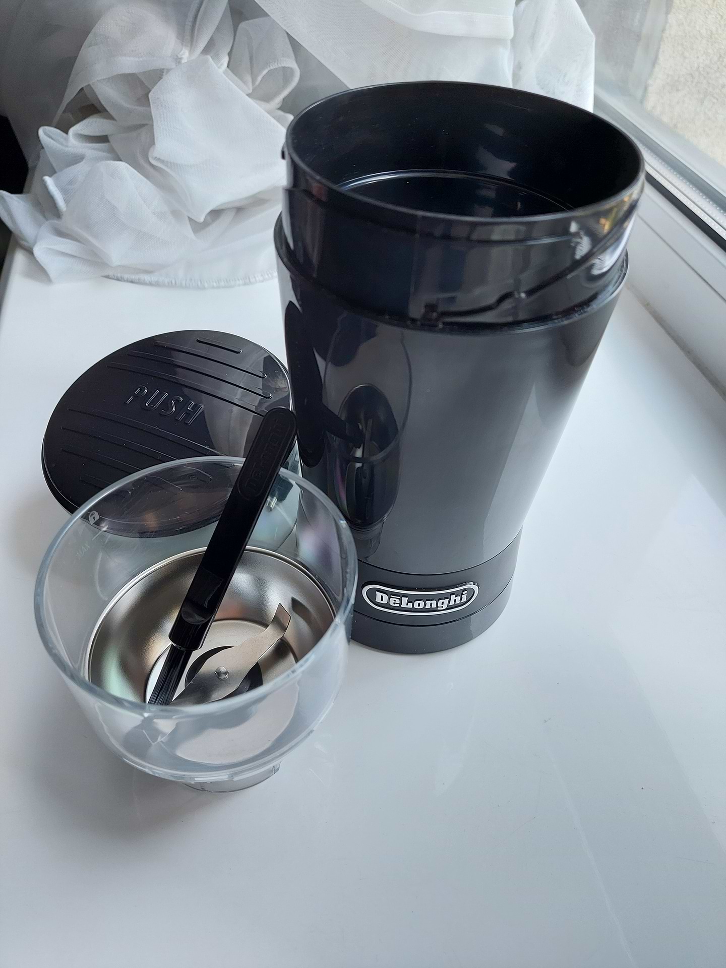 Чудова кавомолка. Виявилася дещо більшою, ніж я собі уявляла, тож, і кави можна змолоти достатньо, навіть на 12 чашок. Виглядає стильно, красиво, гарно вписується в інтер'єр. Молоти тут можна і каву, і цукор на пудру, і різноманітні спеції чи навіть насіння льону та крупи на борошно. Дуже зручно, що чаша для помолу зйомна, можна обережненько помити, наприклад, після спецій. В комплекті також щіточка, аби вишкрібати найменші залишки. Помол регулюється силою та довжиною натискання, при бажання можна зробити дуже дрібний. Покупкою цілком задоволена.