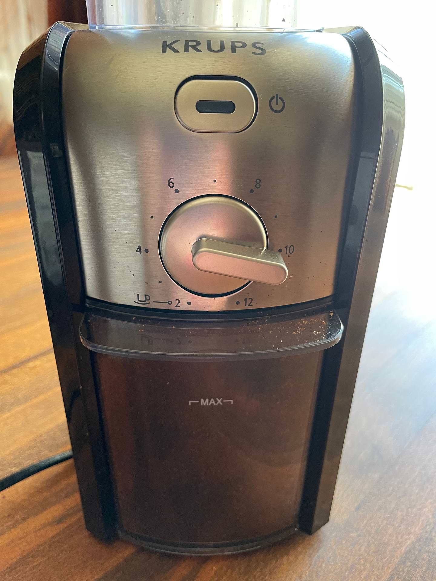 Обирав кавомолку під свою Рожкову кавоварку Крупс, вирішив обрати і кавомолку цього перевіреного бренду. Привернуло увагу, що можна обирати тип помелу, а я як поціновувач насищенної кави, ставлю мінімальний помел.