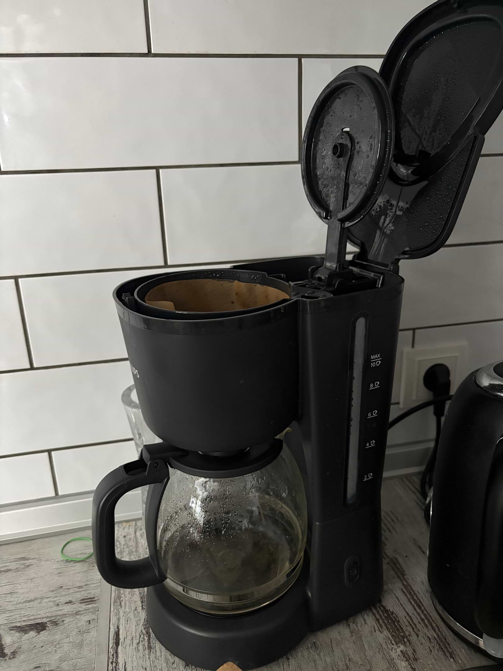 Каву робить добре, але верхня частина достатньо пластмасова, тому під час обробки паром який йде від кавомашини навколо воняє пластмасою. При покупці йшла без фільтра багаторазового