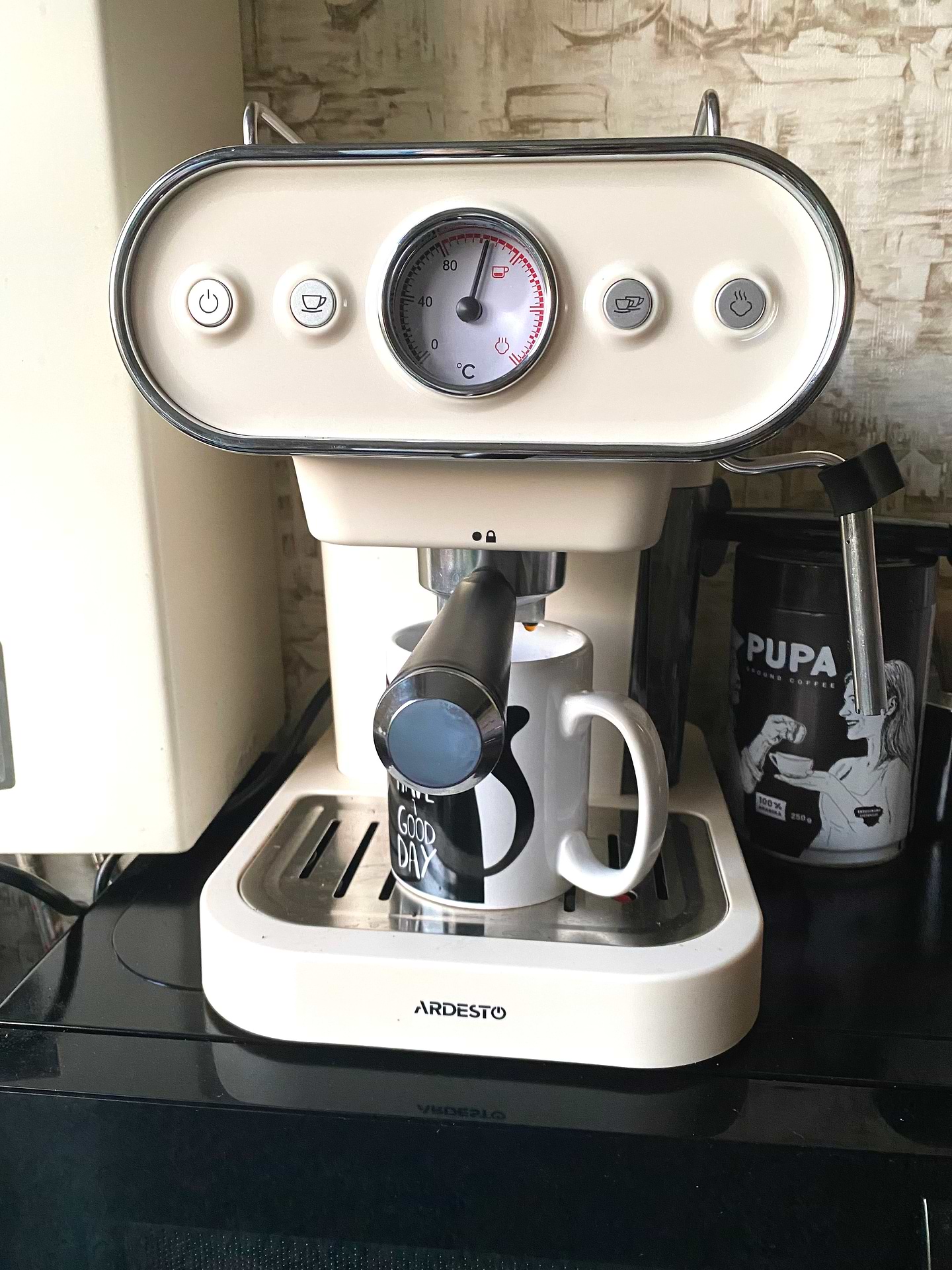 Кавоварка неймовірно гарна та чудово готує каву. Швидко нагрівається, зручна у використанні. Я зняла насадку на капучинатор, щоб мати змогу малювати на каві. Також прибрала сітечку в холдері, еспресо без неї виходить з ідеальними та справжніми кремами. Рекомендую допокупки 100%.