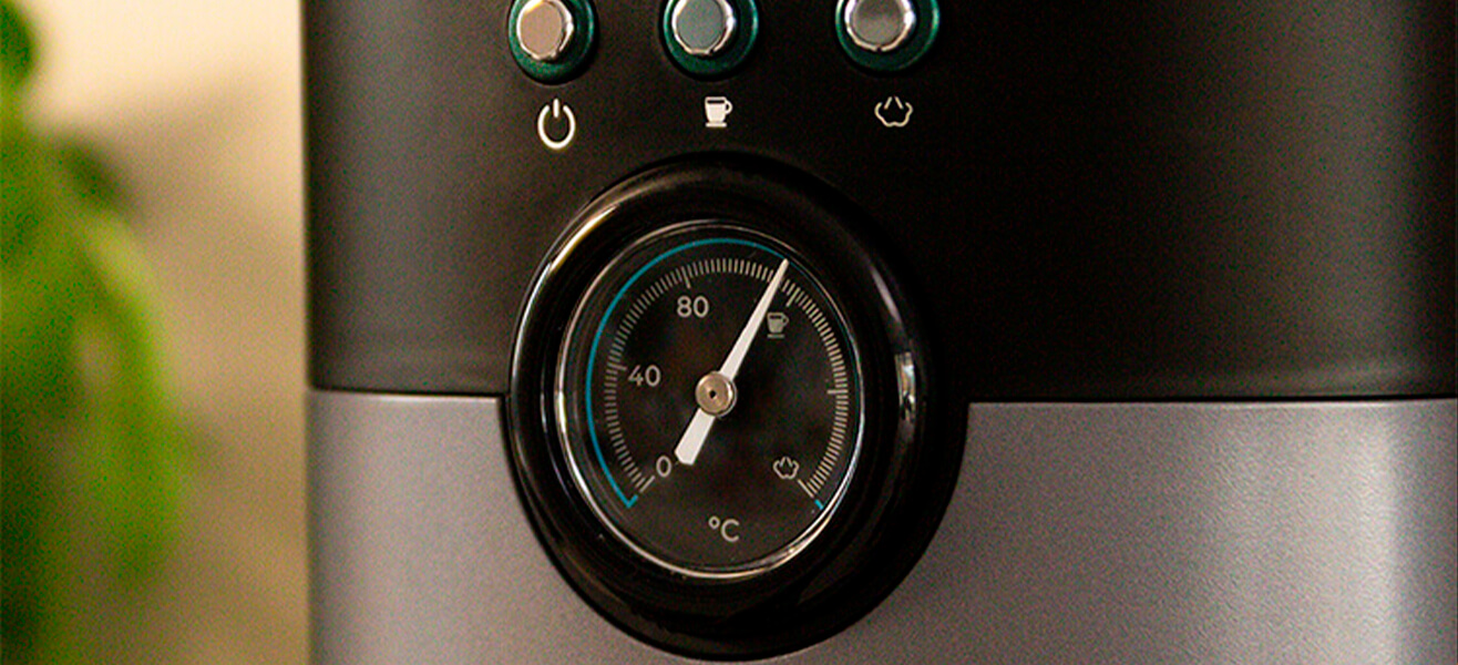 При необходимости можно просмотреть температуру кофеварки в режиме реального времени с помощью встроенного термометра. Он расположен на корпусе, потому теперь приготовить кофе еще удобнее.
