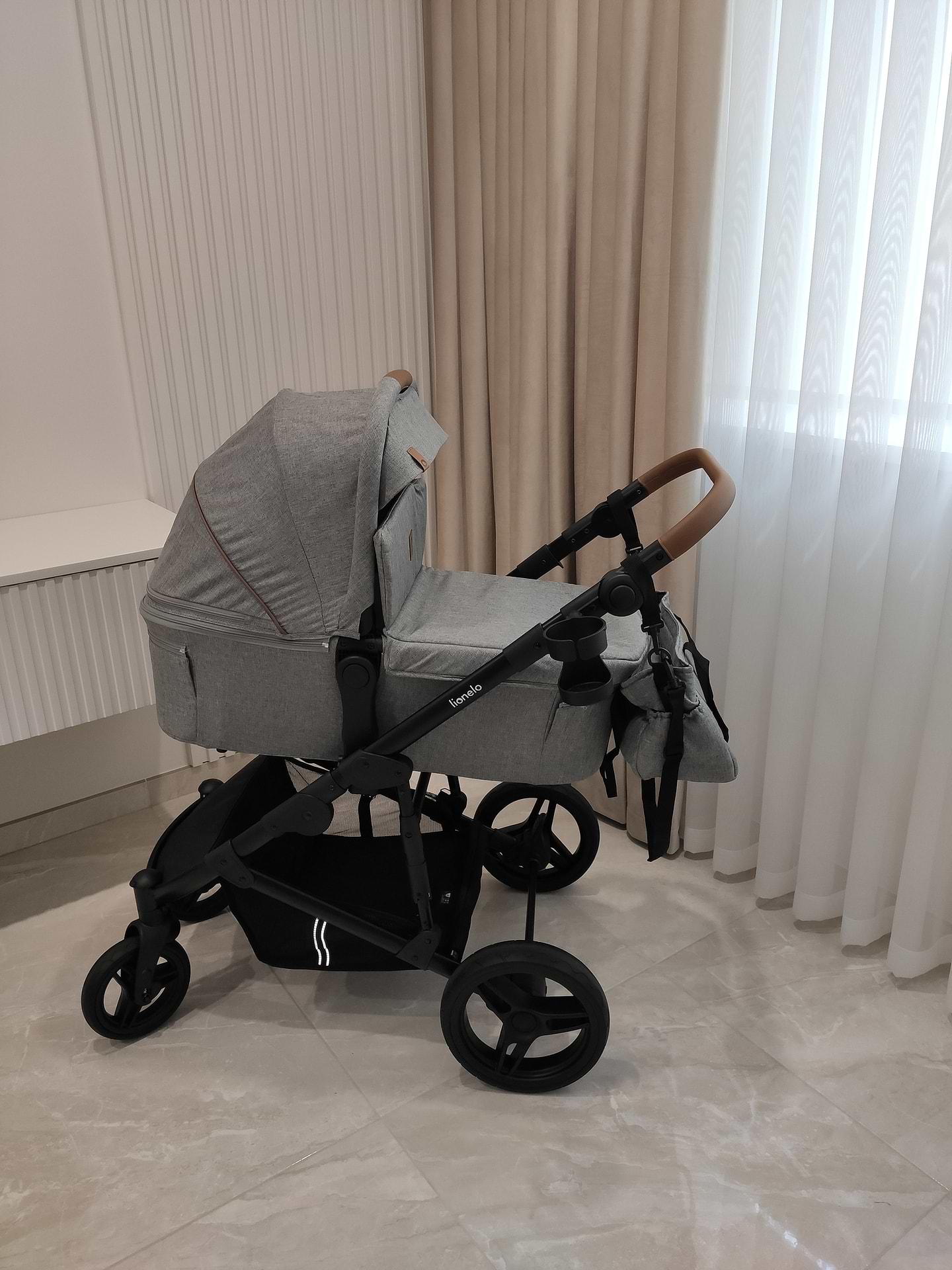 Коляска легка, та дуже маневрена. Можна однією рукою спокійно керувати. Непонана амортизація. Для нас було важливо, що люлька безкаркасна. Важливо для тих, хто планує піднімати люльку окремо від шассі на поверх без ліфта. Єдине, що не було вказано в описі, і трошки незручно, то це чохол на люльку не на застібках, а на липучках.