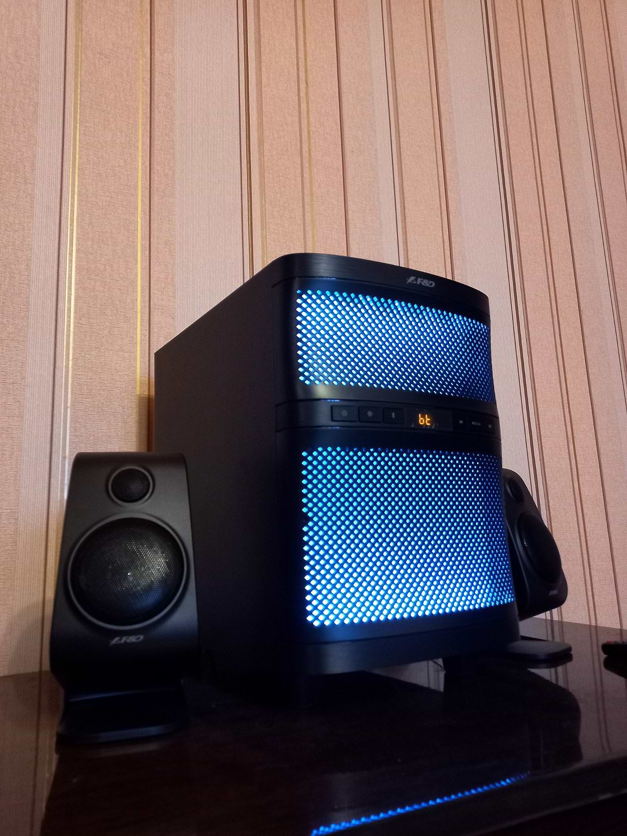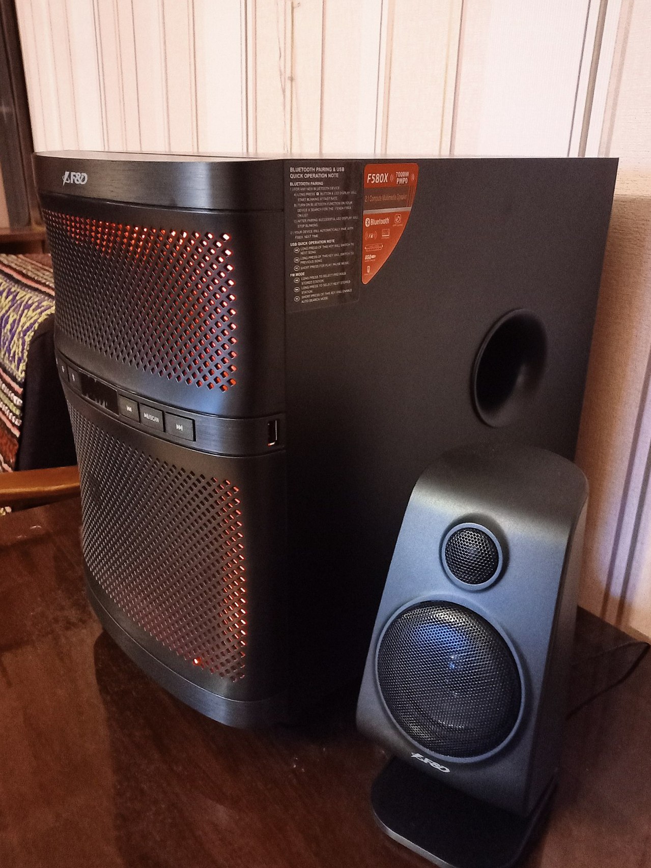 Особливість: у Новій моделі, 2.1 F&D F580X, регулювання басів здійснюється виключно з пульта і тільки по шкалі від 1 до 3. У попередній моделі, F380X, регулювання механічне позаду корпуса і ти сам обираєш потрібну потужніть басів.