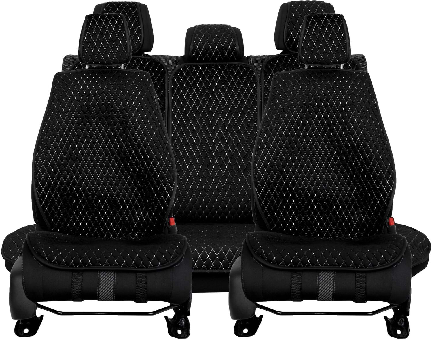 Комплект накидок на сиденье автомобиля EVAtech из алькантары черный с белой нитью, черный кант, малый ромб SETACASMRBWB