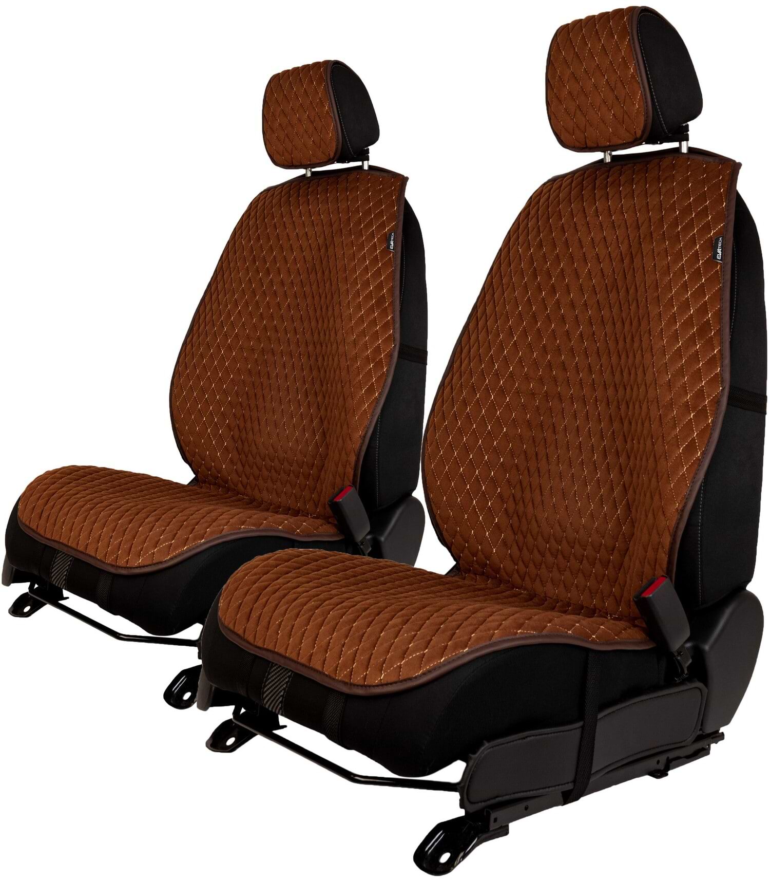 Все о Комплект накидок на сиденье автомобиля EVAtech из алькантары коричневые с коричневой нитью, коричневый кант, малый ромб 2 шт ACASDMRZZZ