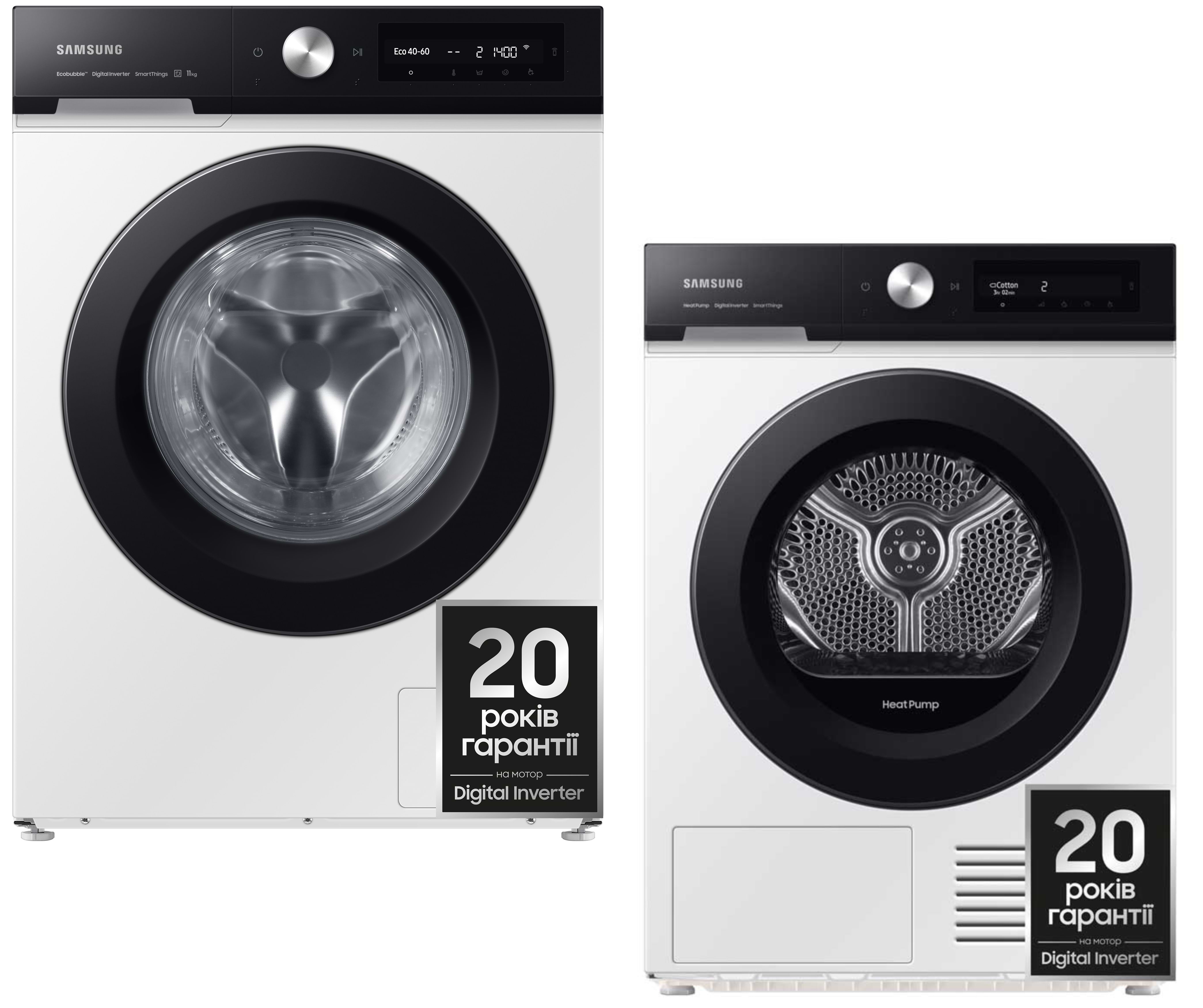 Характеристики Samsung Пральна машина з фронтальним завантаженням + Сушильна машина Samsung WW11B1504CAEUA + DV90BB5245AEUA