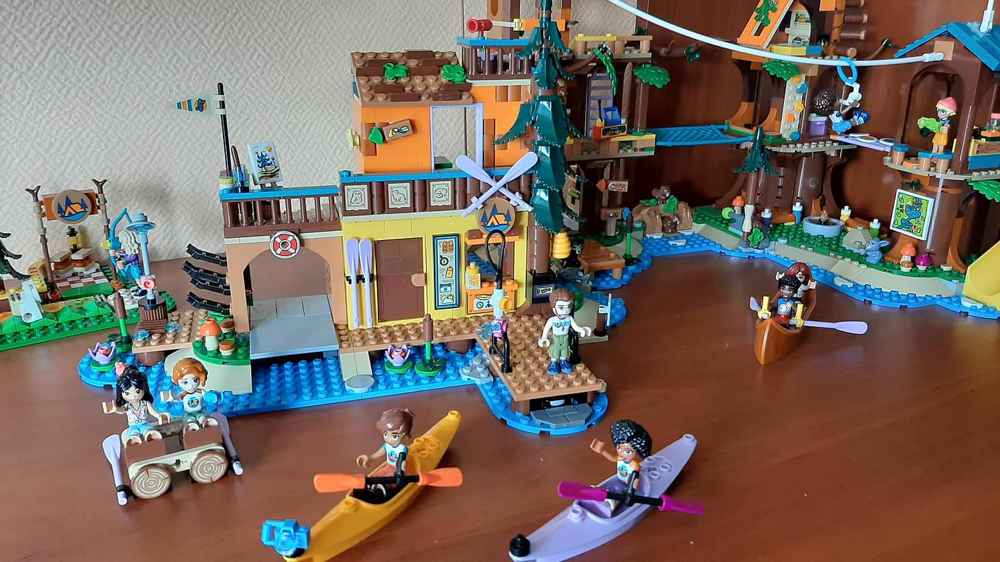 Нещодавно придбали цей набір, він став відмінним доповненням до нашої колекції) Набір дуже класний, досить великий, в наборі багато цікавого: 2 каное, спуск для них, міні водяний пістолет, дерев'яний пліт, столик для пінпонгу,душ, аптечка, ведмедик, жабка, метелики, та ще багато різних цікавинок) В комплекті три мініфігурки, тож можна придумувати і розігрувати багато різних історій із ними. Ціна зі знижкою і швидкість доставки також дуже порадували! Дуже сподобався набір, рекомендую!