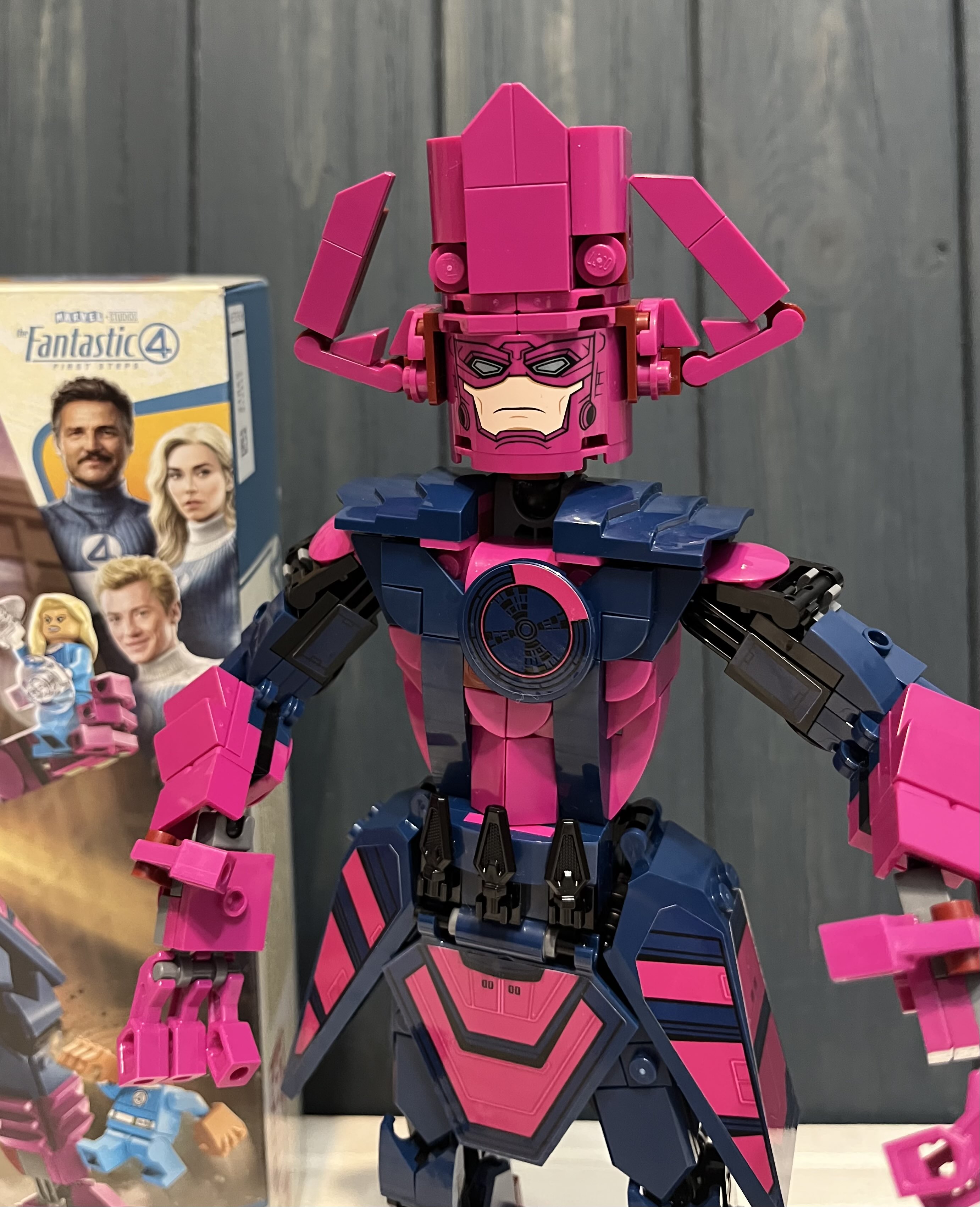 Прекрасный набор для всех поклонников Marvel и LEGO! “Фантастическая четвёрка против Галактуса” — это именно тот случай, когда сборка приносит столько же удовольствия, сколько и готовая модель. Огромная фигурка Галактуса выглядит впечатляюще — массивная, подвижная и детализированная, она моментально притягивает внимание. LEGO отлично передали масштаб и мощь персонажа, при этом сохранив фирменный шарм конструктора.