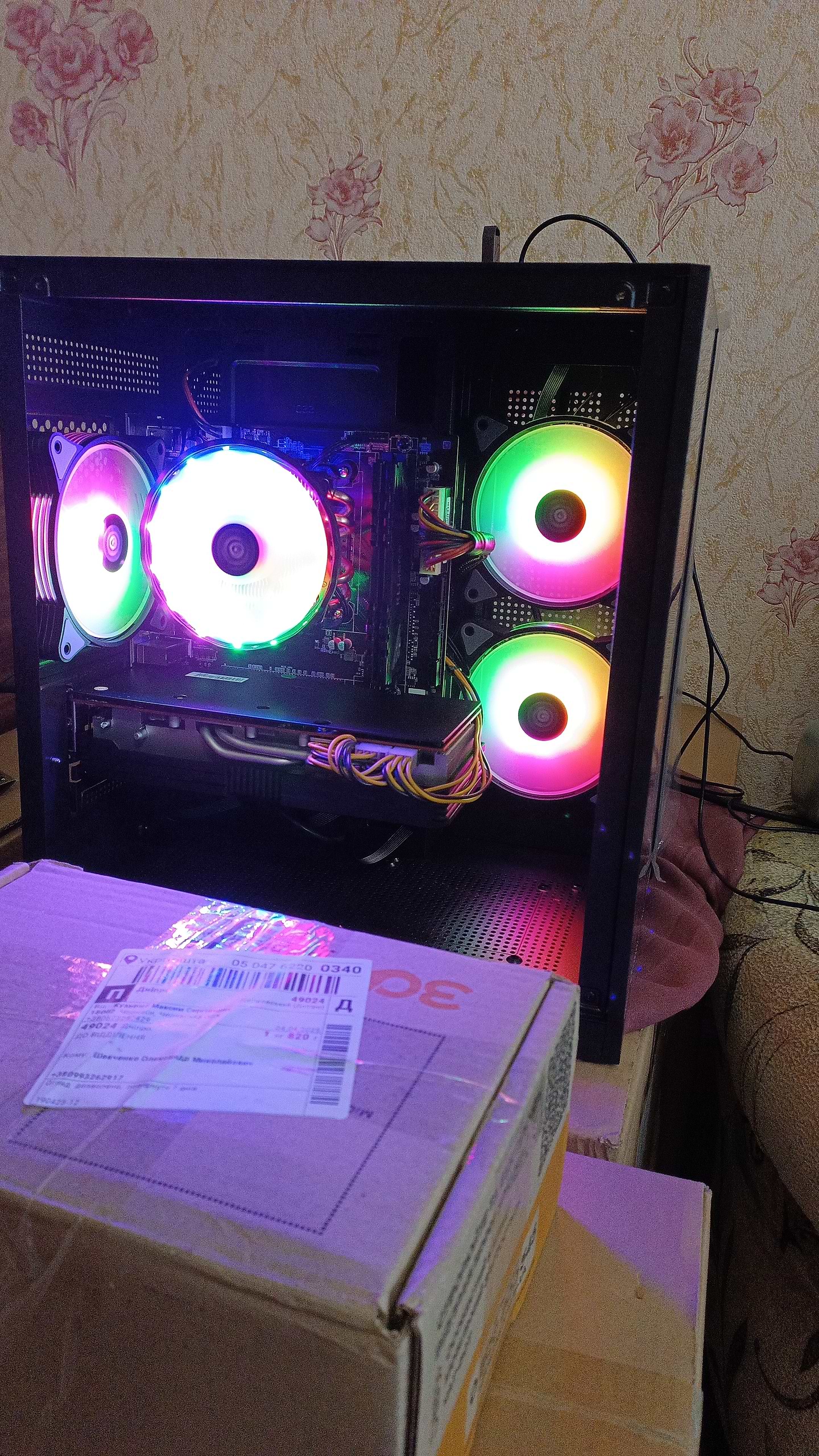 Вот так корпус выглядит со всеми кулерами, собственно, если его и покупать то как минимум брать ещё вентиляторы. РГБ контроллера в комплекте нет, лишь есть кнопка переключения подсветки для контроллера.